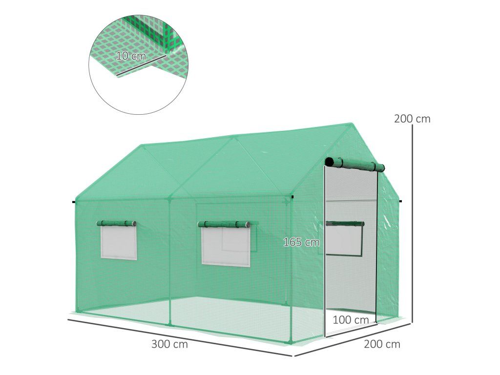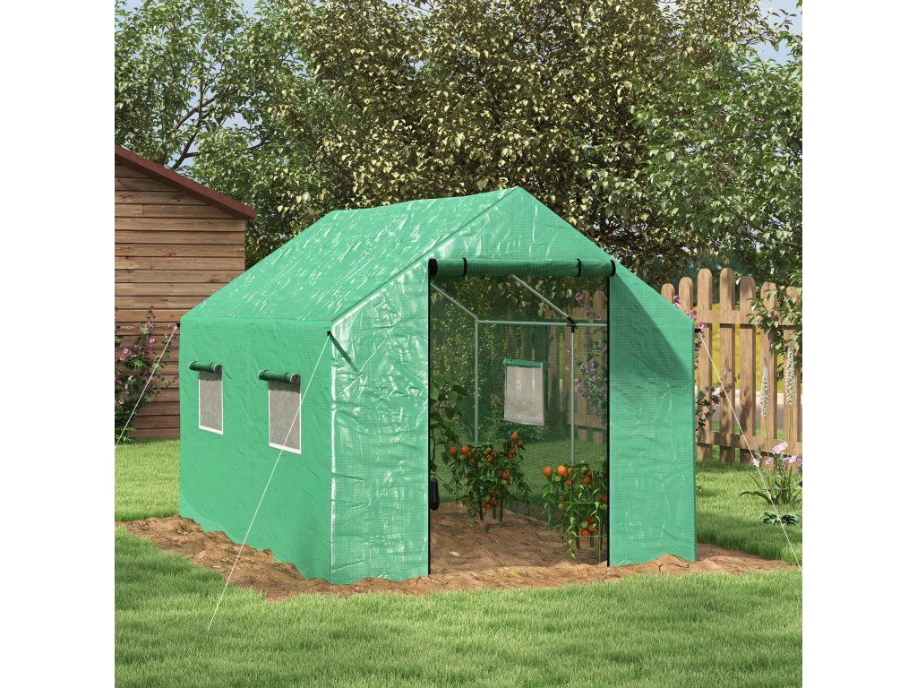 Široké dveře a síťovaná okna: Velkoryse dimenzované rolovací dveře se zipem a čtyři okna poskytují snadný přístup do vašeho skleníku a zajišťují křížové větrání, což vám umožňuje regulovat teplotu a vlhkost dle vašich představ. Všechna okna jsou vybavena drátěným pletivem, aby se zabránilo vniknutí nežádoucích okřídlených návštěvníků.