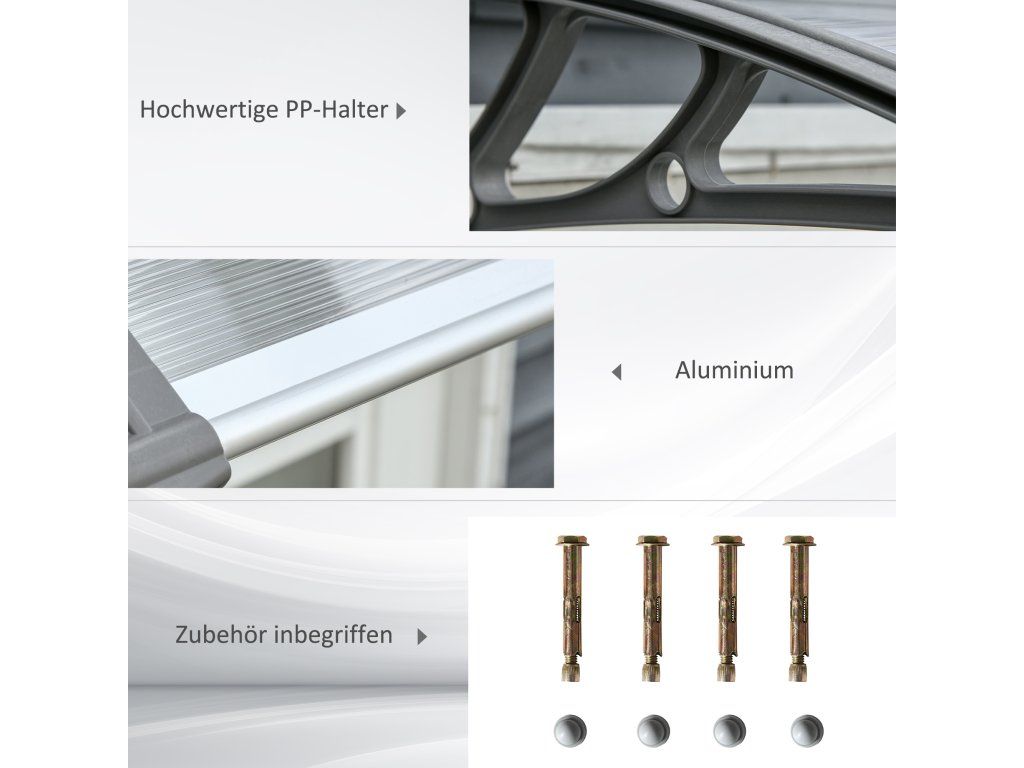 Vybrané materiály: Tato stříška na dveře je vyrobena z 5 mm silného, průhledného polykarbonátu, plastových konzol a hliníkových tyčí odolných proti korozi. Spolehlivě chrání vaše okna, verandy a vchody před srážkami, aniž by vyžadovala speciální údržbu.