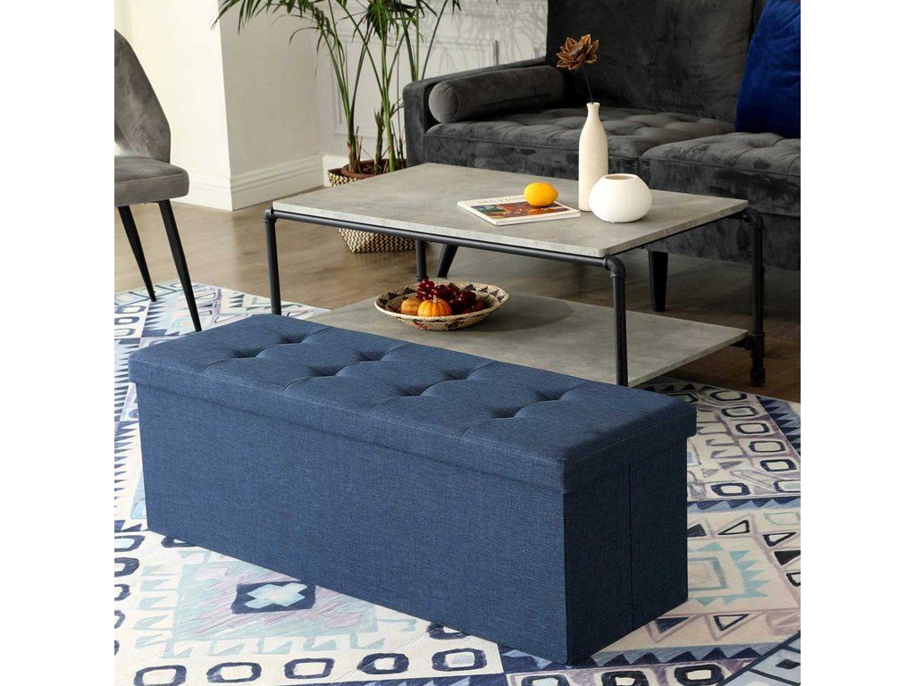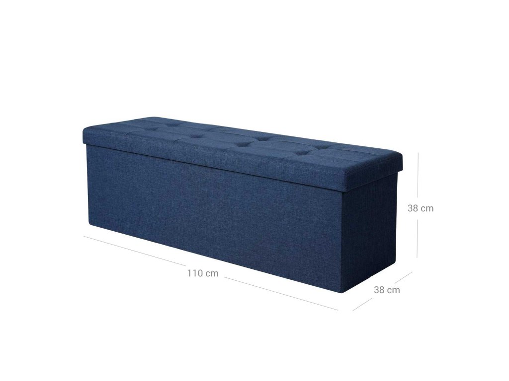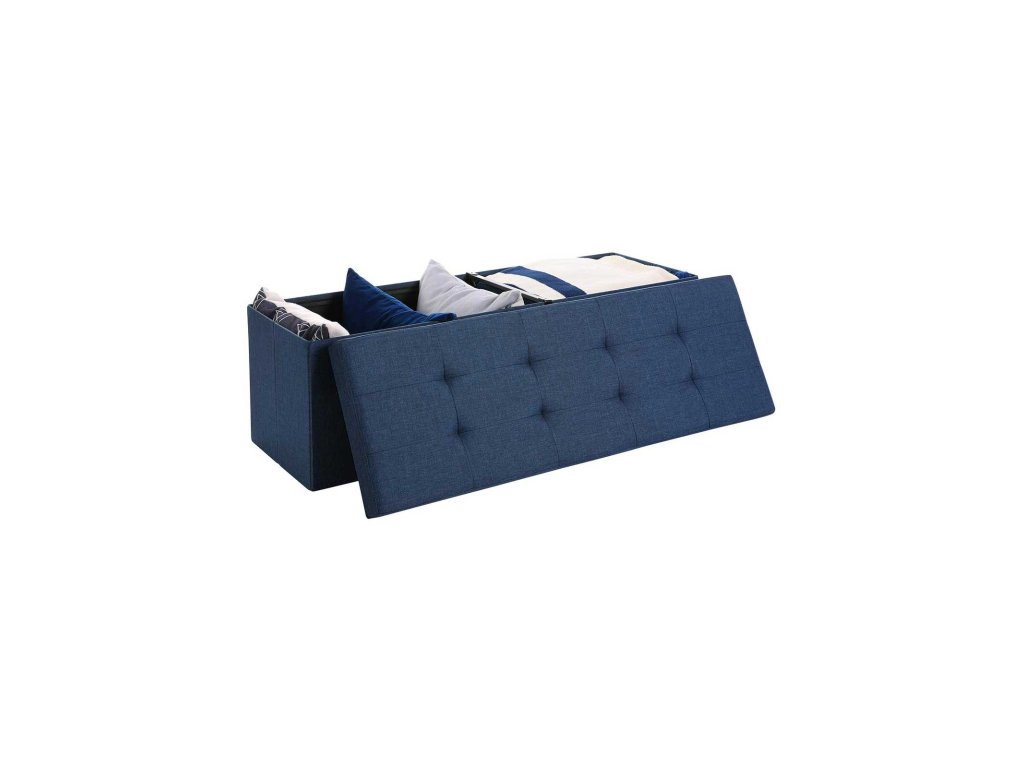 Úložná lavice, polstrovaná truhla s víkem, skládací sedadlo, objem 120 l, nosnost až 300 kg, námořnická modř.