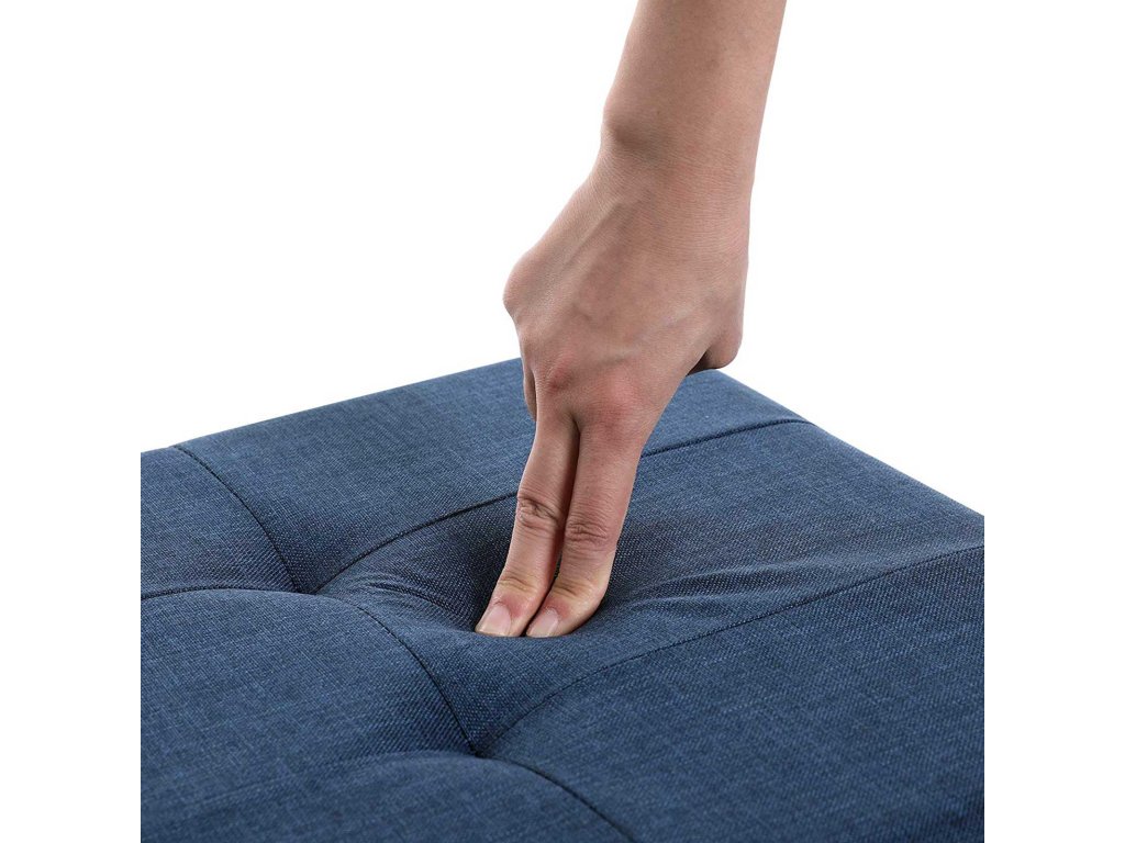 Poutavý úložný prostor: Moderní tmavě modrá barva a chomáčky ve stylu Chesterfield na pohodlně čalouněném sedáku dělají z této lavice atrakci v každé místnosti. a přitom má působivou funkčnost a vysokou statickou nosnost 300 kg.NA KONCI POSTELE? Kam byste chtěli umístit tento úložný otoman? Zda do obývacího pokoje naproti pohovce nebo do předsíně vedle šatní skříně. jediným omezením vaší vynalézavosti je vaše představivost!