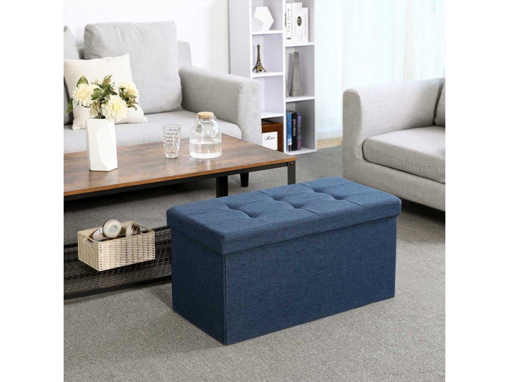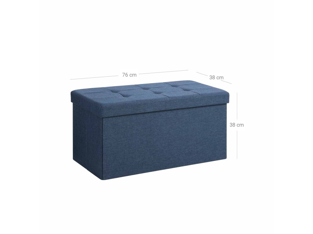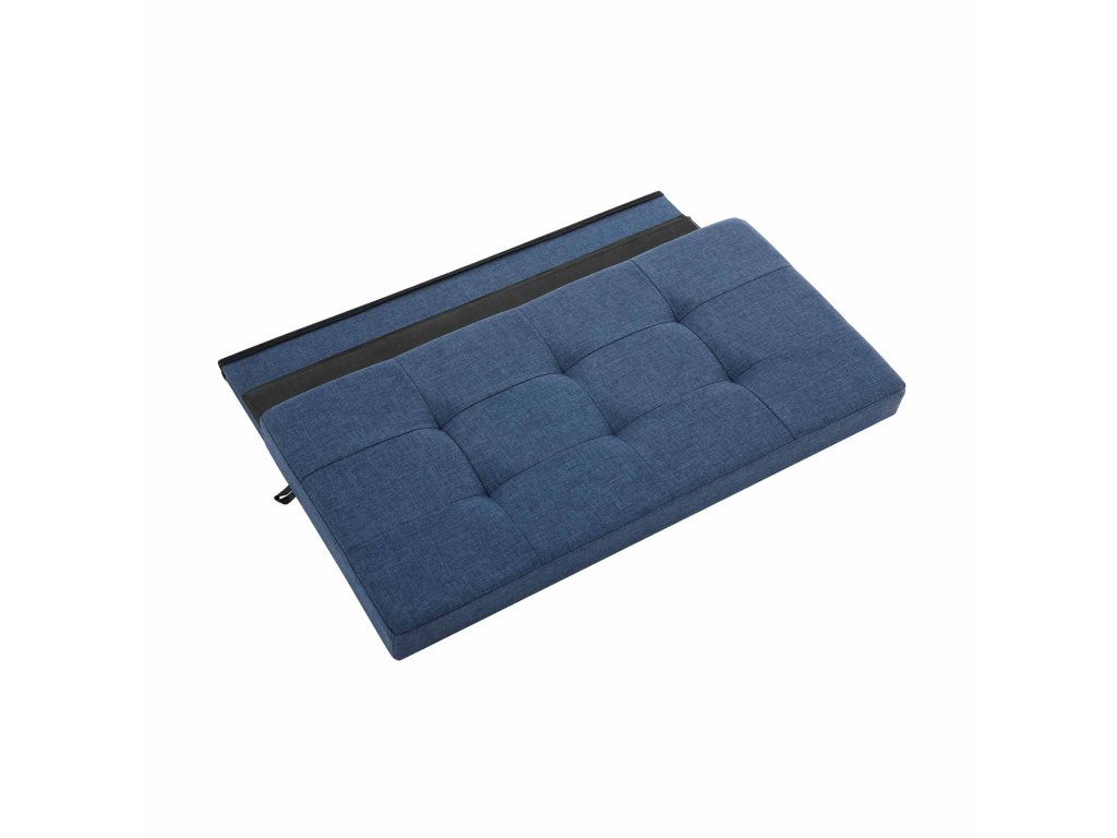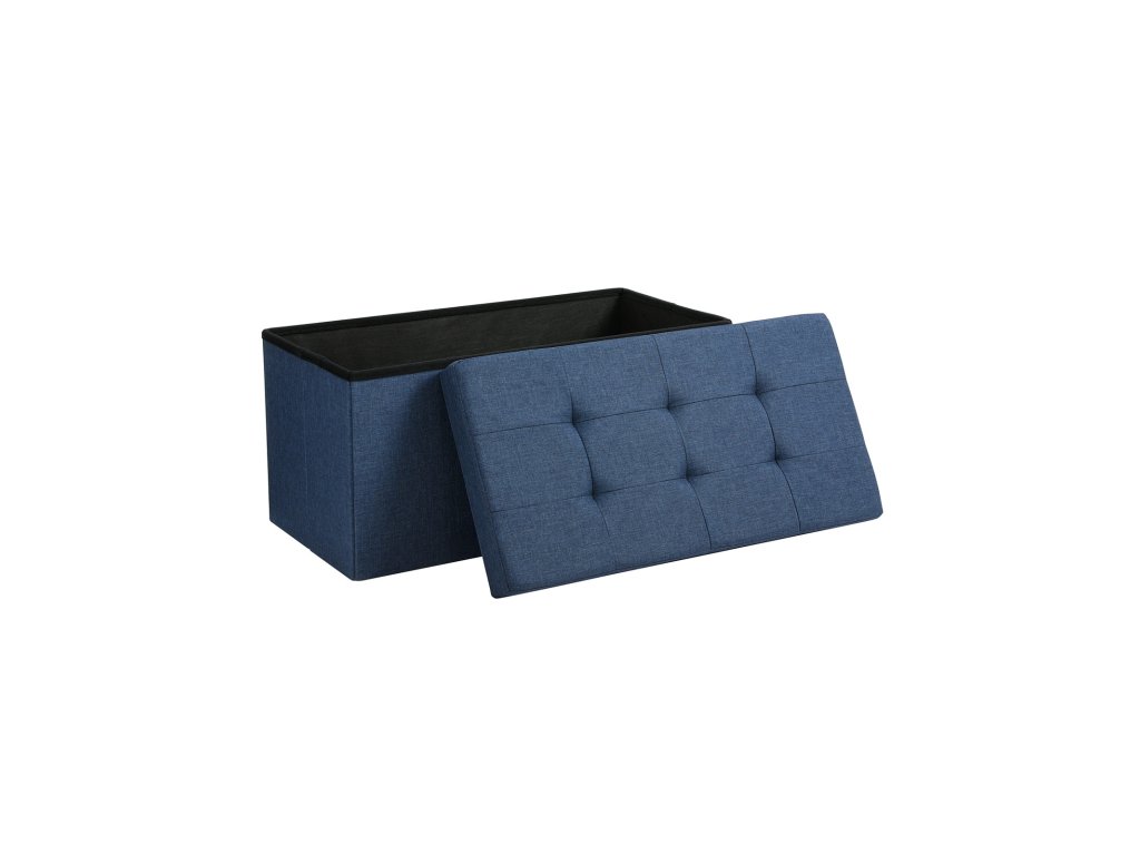 Úložná lavice, truhla s víkem, skládací sedadlo, ložnice, předsíň, úspora místa, objem 80 l, nosnost až 300 kg, polstrovaná, tmavě modrá.