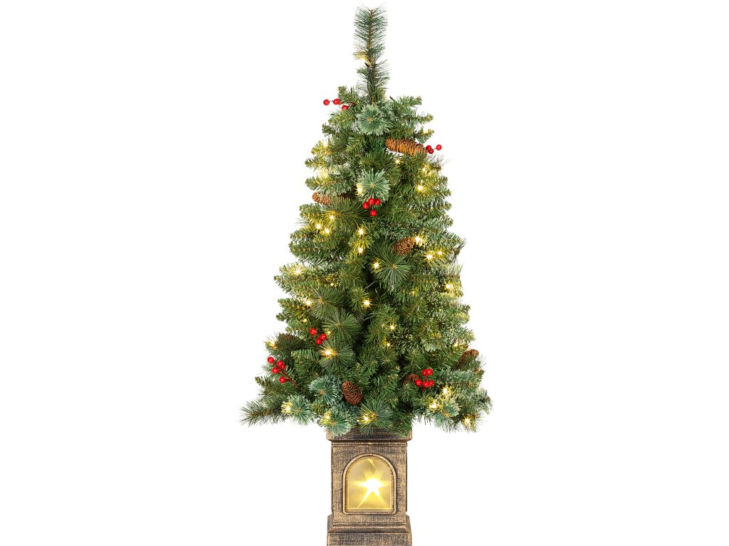 Rozsviťte své svátky s umělým vánočním stromkem, který svítí 100 teplými bílými LED diodami v osmi režimech. Zdobí ho bobule a šišky, 214 hustých vrcholků vánočního stromku vytváří tradiční vánoční atmosféru.