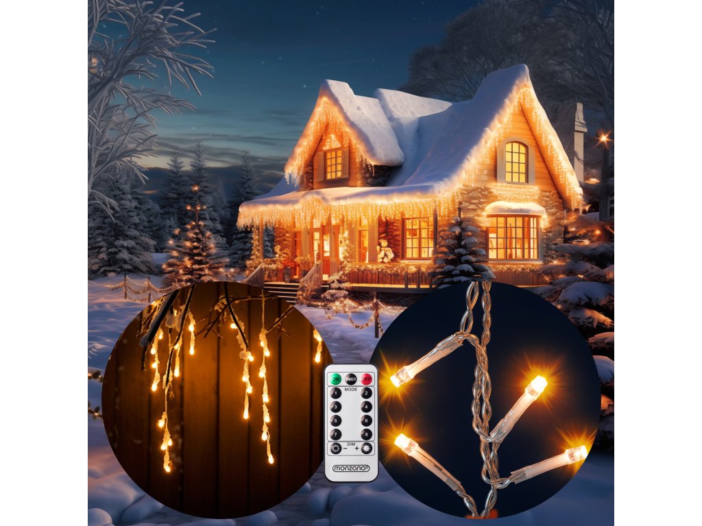 Světelný řetěz s 400 bílými LED světly je dlouhý 10 m + 5 m přívodní kabel. Toto osvětlení má univerzální použití, tedy nejen jako vánoční dekorace, ale i jako výzdoba při pořádání zahradních párty a večírků. Světelný řetěz je vhodný pro jak venkovní tak vnitřní použití.