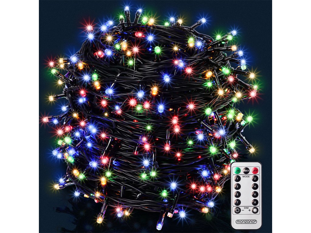 Vánoční LED osvětlení 60 m s dálkovým ovládáním | barevné 600 LED