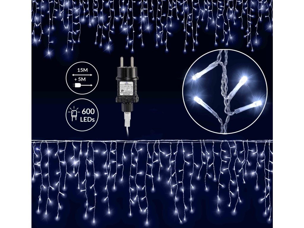 Světelný řetěz s 600 bílými LED světly je dlouhý 15 m + 5 m přívodní kabel. Toto osvětlení má univerzální použití, tedy nejen jako vánoční dekorace, ale i jako výzdoba při pořádání zahradních párty a večírků. Světelný řetěz je vhodný pro jak venkovní tak vnitřní použití.