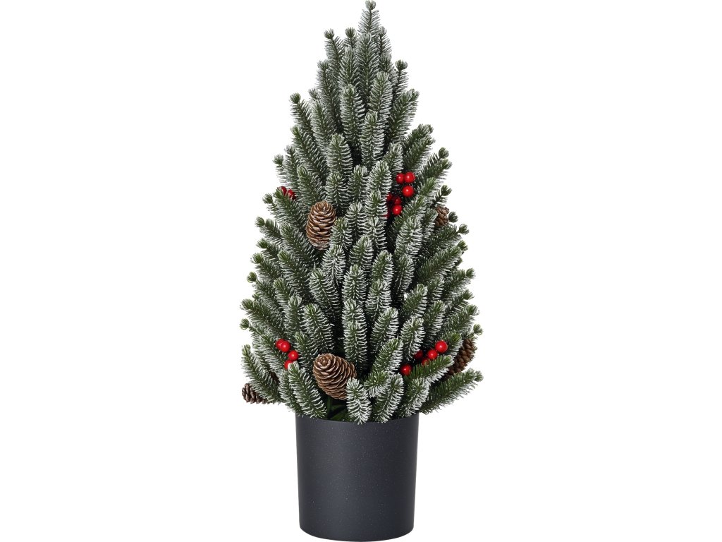 - Umělý vánoční stromek v realistickém stylu, s 8 červenými bobulemi a 7 zasněženými borovicovými šiškami.