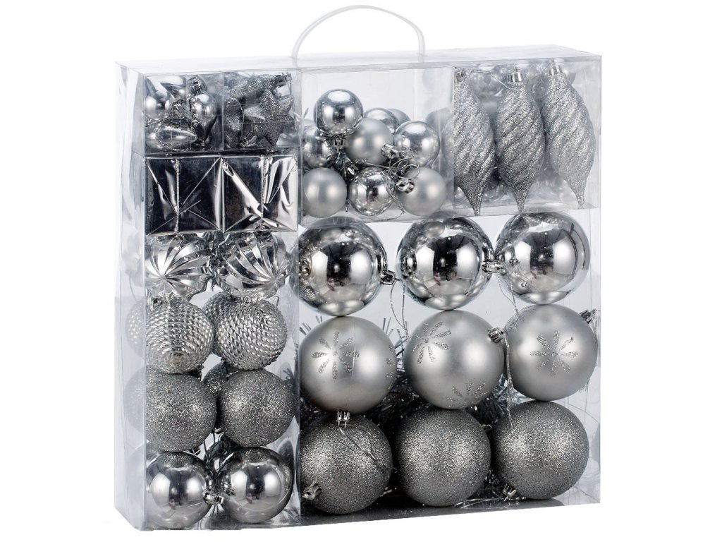 Vánoční ozdoby sada 103 kusů | stříbrné