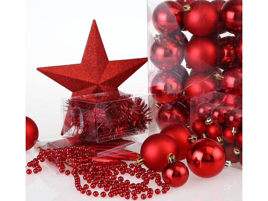 Vánoční ozdoby sada 77 kusů | červené
