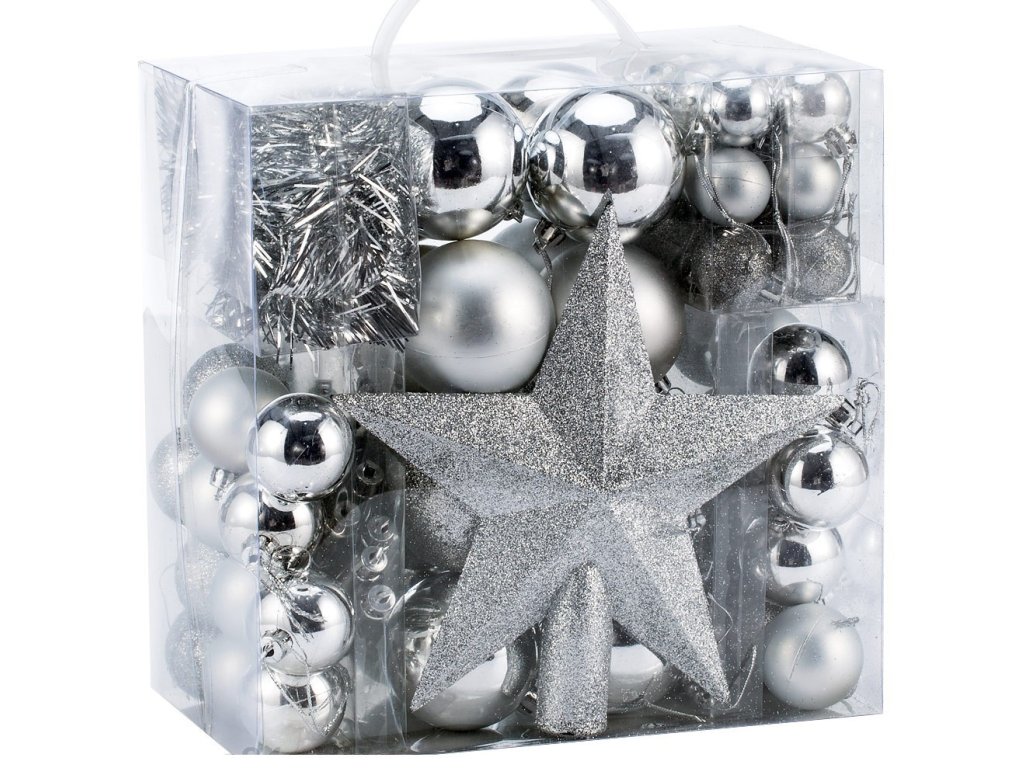 Vánoční ozdoby sada 77 kusů | stříbrné