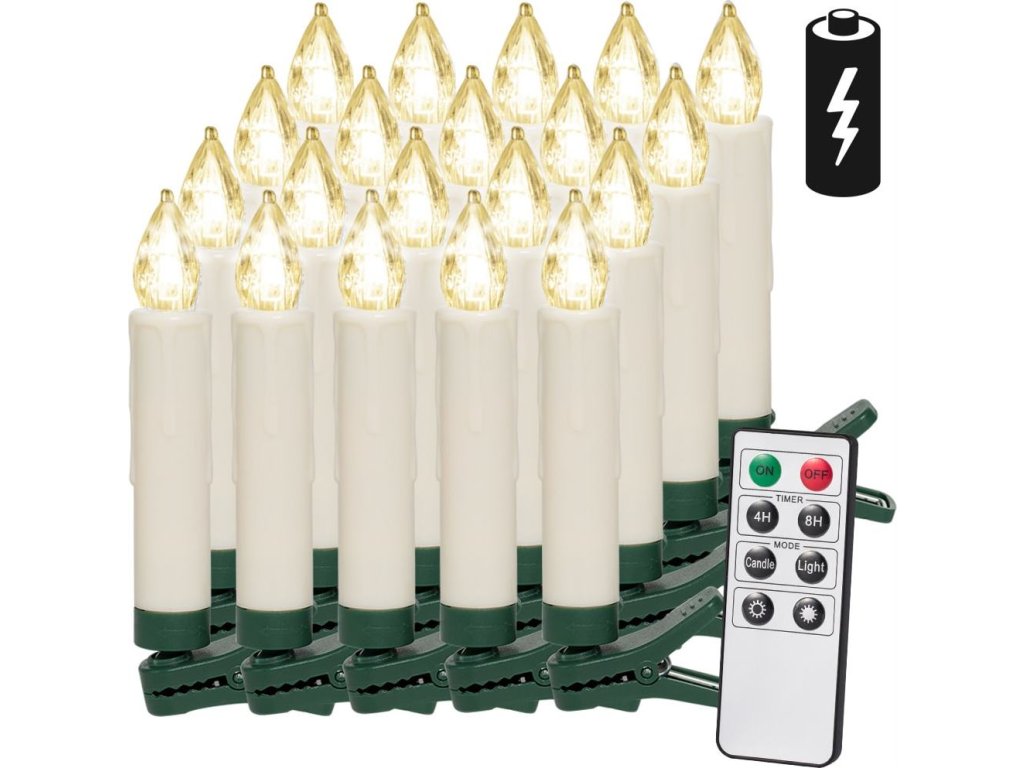 Vánoční svíčky na stromeček 20 LED včetně baterií | teplá bílá