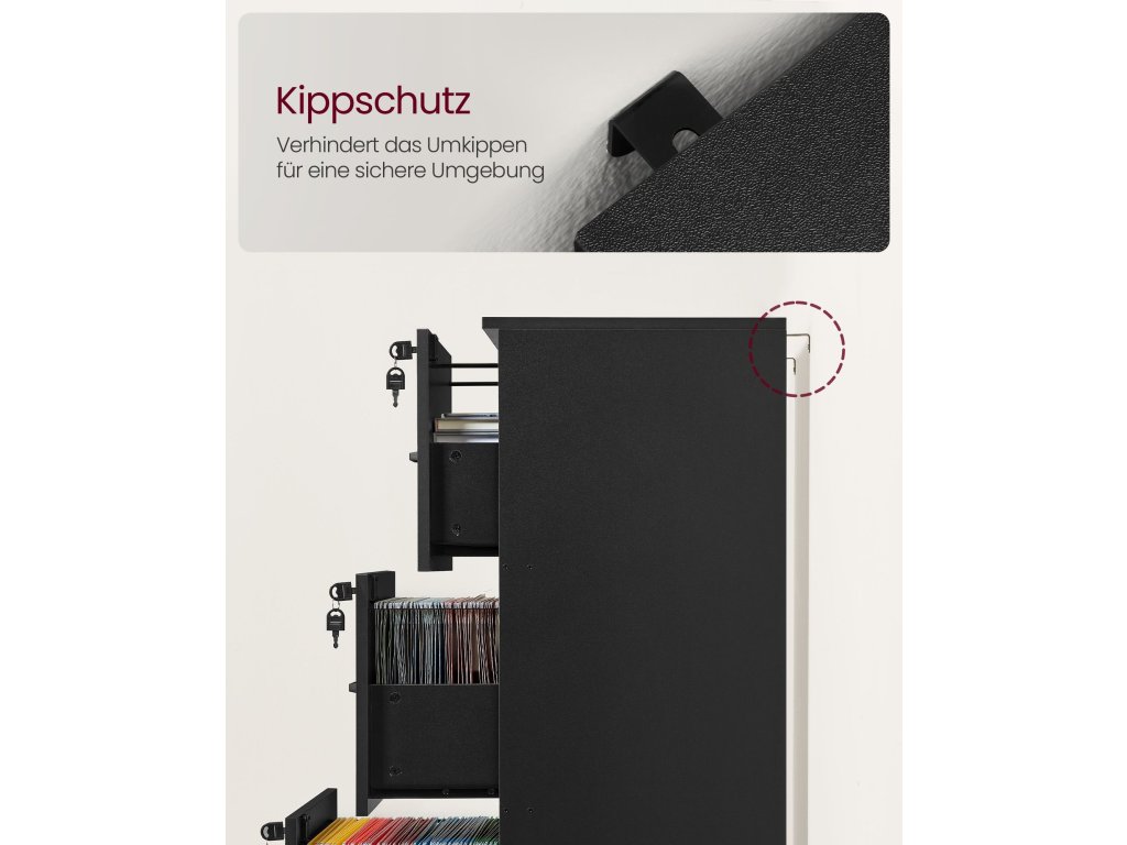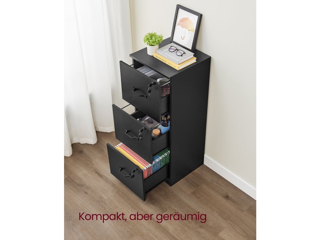 3zásuvková vertikální kartotéka, skříňka na dokumenty pro domácí kancelář, stojan na tiskárnu, se 3 uzamykatelnými zásuvkami, nastavitelná závěsná lišta, pro soubory formátu A4 a Letter, inkoustově černá barva.