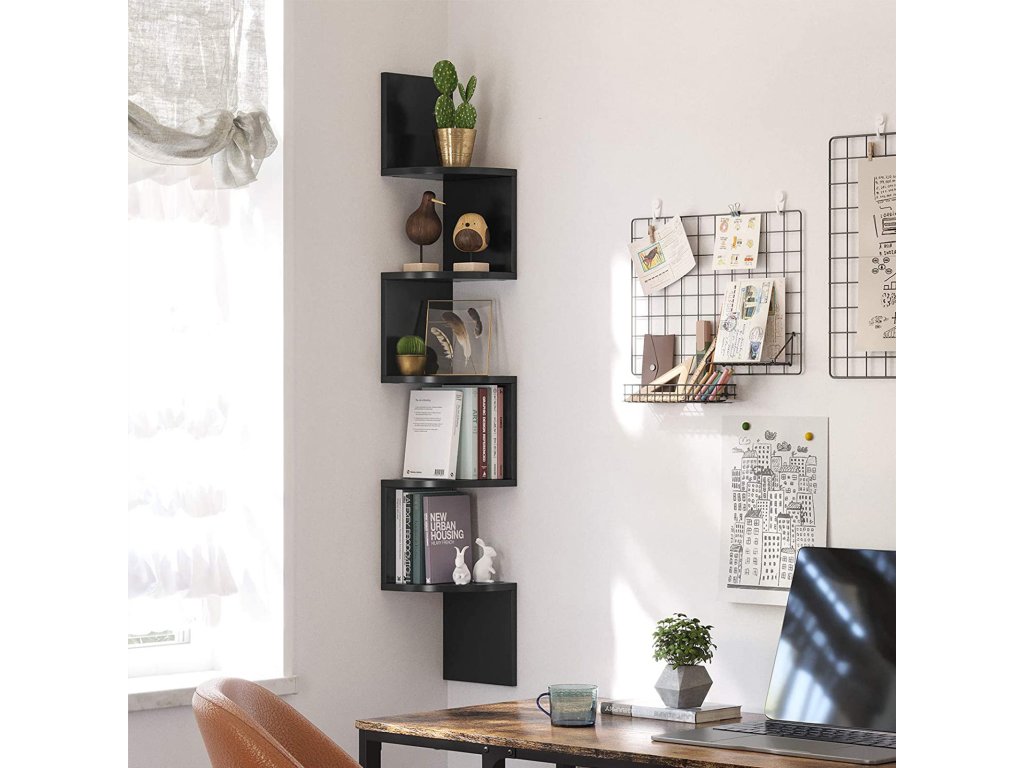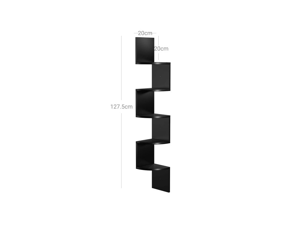 Pětiúrovňový nástěnný rohový regál, dřevěná police, do kuchyně, ložnice, obývacího pokoje, pracovny, černý.