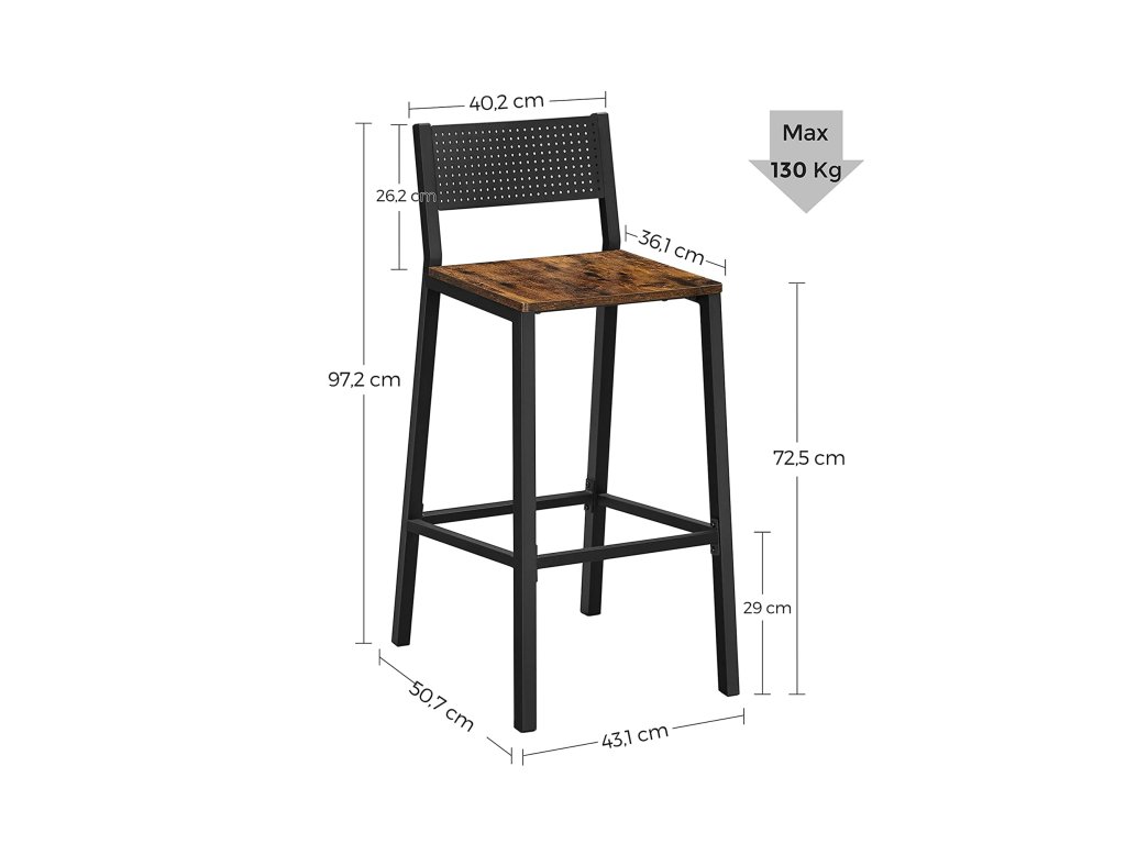 Je čas na industriální styl! Rustikální kombinace hnědé dřevotřísky, černého kovu a perforovaného opěradla - barová židle do kuchyně, baru nebo jídelny. Stolička v industriálním stylu vaše hosty jistě potěší.