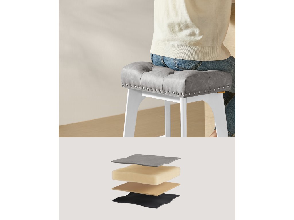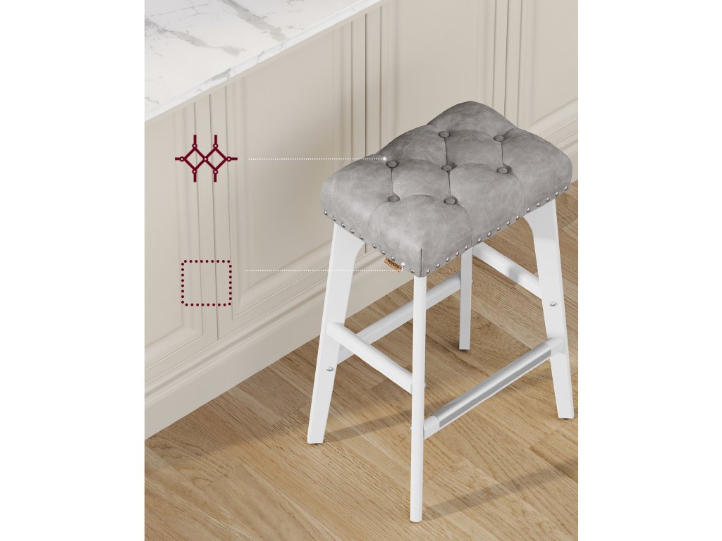 Estetika přechodu Tyto barové židle s všívanými knoflíky a čalouněním z hřebíků vyzařují klasickou eleganci. Jedinečně tvarované nohy jim dodávají vizuální kouzlo, takže se stanou výrazným doplňkem každé domácnosti.Přijměte pohodlí Proč volit mezi stylem a pohodlím? Díky bohatě polstrovanému sedadlu z pěny s vysokou hustotou, která odolává deformacím, a vestavěným opěrkám nohou pro větší pohodlí můžete mít obojí!Pozornost věnovaná detailům Každá z těchto snídaňových stoliček má kovovou chráněnou opěrku nohou, která je navržena tak, aby byla odolná a snadno se čistila, i když na ni šlápnete botami.Robustní a stabilní Nohy z masivního dřeva s vyrovnávacími nožičkami zajišťují stabilitu na mírně nerovných podlahách a zároveň chrání podlahu před poškrábáním. Každá kuchyňská stolička je dostatečně silná, aby unesla až 265 kg.Montáž bez námahy Sestavení nového páru barových židlí je hračka. Stačí postupovat podle jednoduchých pokynů a během chvilky budou připraveny k servírování.| Kategorie: | Barové židle |