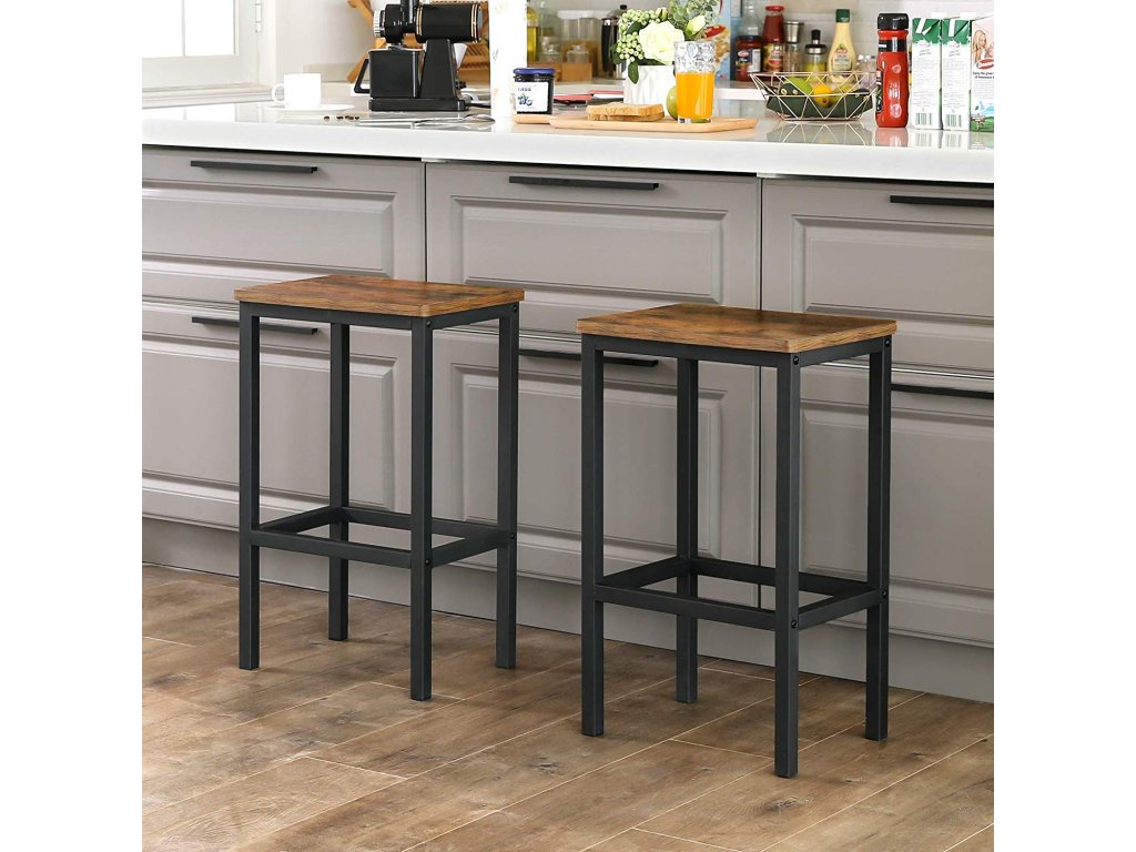 Barové židle, sada 2 barových židlí, kuchyňské snídaňové barové židle s podnožkou, průmyslové v obývacím pokoji, společenská místnost, rustikální hnědá.