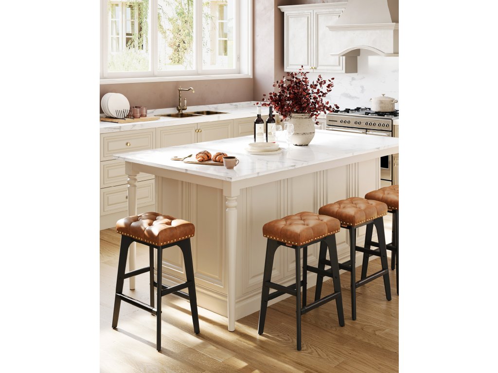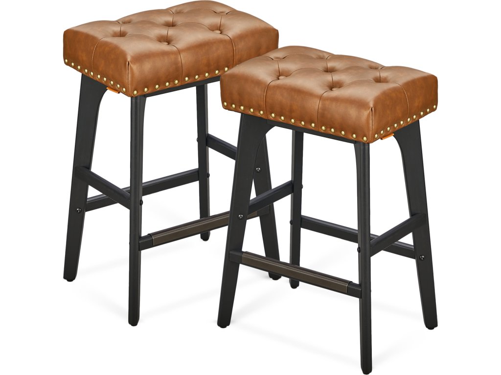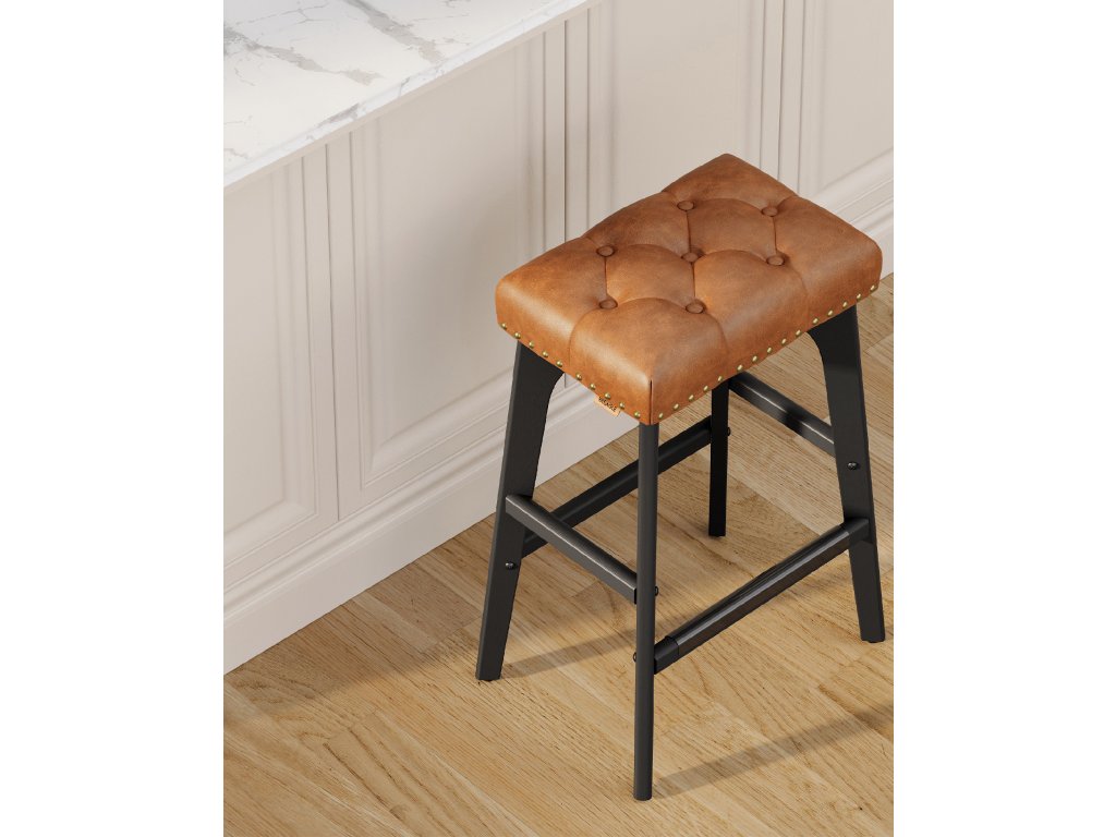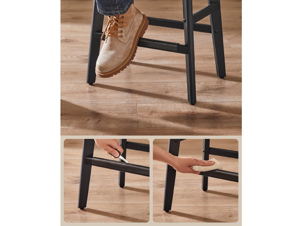 Estetika přechodu Tato barová židle s ozdobnými knoflíky a nýty vyzařuje klasickou eleganci. Jedinečně tvarované nohy jim dodávají vizuální kouzlo a činí z nich poutavý doplněk každé domácnosti.Welcome Comfort Proč volit mezi stylem a pohodlím? Díky bohatě polstrovanému sedadlu z pěny s vysokou hustotou, která udržuje tvar, a integrovaným opěrkám nohou pro větší pohodlí můžete mít obojí!Pozornost věnovaná detailům Každá z těchto snídaňových stoliček má kovovou chráněnou podnož, která zajišťuje odolnost a snadné čištění, i když na ně šlápnete botami.Robustní a stabilní Nohy z masivního dřeva s nastavitelnými nožičkami zajišťují stabilitu na mírně nerovných podlahách a zároveň chrání podlahu před poškrábáním. Kuchyňská stolička je dostatečně pevná, aby unesla až 120 kg.Snadná montáž Sestavení kuchyňské židle je hračka. Stačí postupovat podle jasných pokynů a židle bude během chvilky připravena k použití.| Kategorie: | Barové židle |