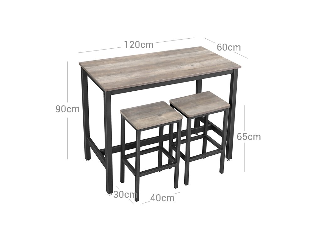 SADA PRO VYŽADUJÍCÍ: Barový stůl a 2 barové židle s vysoce kvalitní béžovou povrchovou úpravou - skvělý doplněk do vaší kuchyně, herny nebo obývacího pokoje. Černý ocelový rám nejenže tvoří atraktivní kontrast k tónu dřeva, ale slouží také jako praktická opěrka nohou.SNÍDANĚ PRO DVA? Vysoký stůl má plochu 120 x 60 cm, na kterou lze snadno umístit rohlíky, uzeniny a čerstvě vymačkaný pomerančový džus. Pořiďte si další 2 barové židle a vytvořte si snídaňový stůl pro 4 osoby.