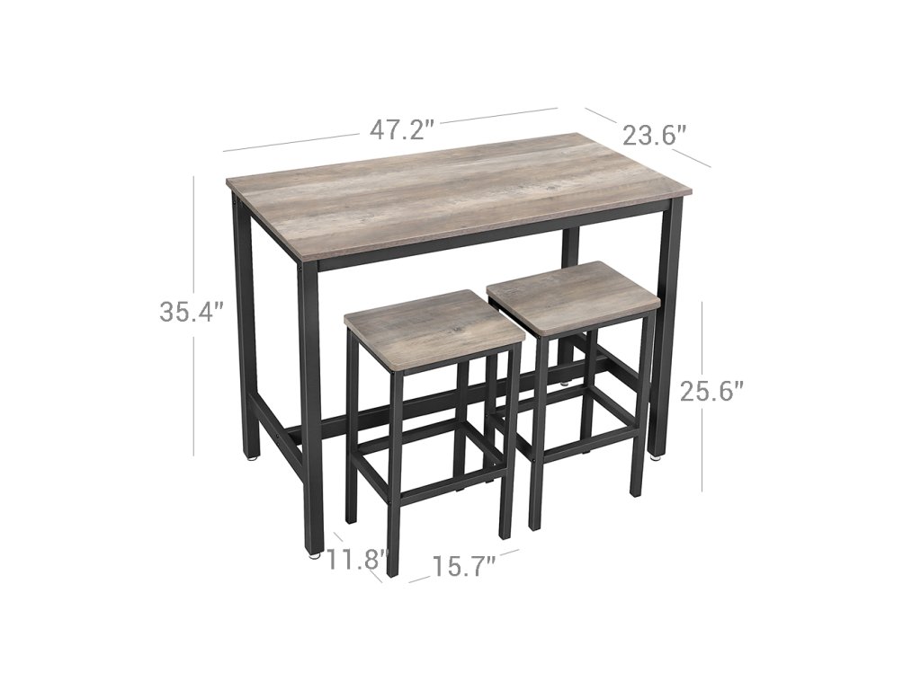 PERFEKTNÍ VHODNOST: Dvě barové židle o rozměrech 40 x 30 x 65 cm se dokonale vejdou pod barový pult, takže sada je mimořádně úsporná, i když uspořádáte další 2 židle.INSTALACE BEZ PŘEKÁŽEK: Jednoduchá konstrukce barových židlí a kuchyňského stolu a šrouby stejné velikosti umožňují rychlou a snadnou montáž.CO ZÍSKÁTE: Sada barového stolu a 2 barových židlí z naší kolekce ALINRU, která podtrhne váš obytný prostor, intuitivní návod pro snadnou montáž a způsob, jak vytvořit snídaňový koutek snů.| Kategorie: | Barové stolky |