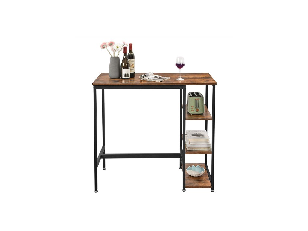 Barový stůl, kuchyňský stůl, jídelní stůl se 3 policemi, stabilní ocelová konstrukce, pro bar, pivnici, restauraci, 109 x 60 x 100 cm, industriální styl, snadná montáž, rustikální hnědá.
