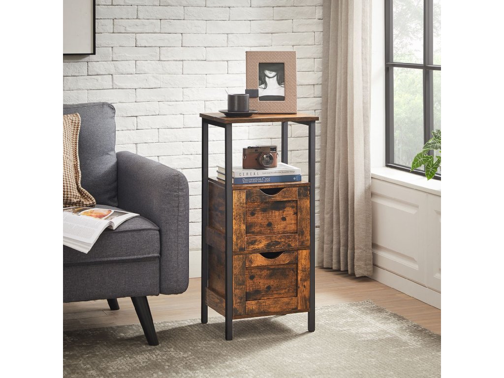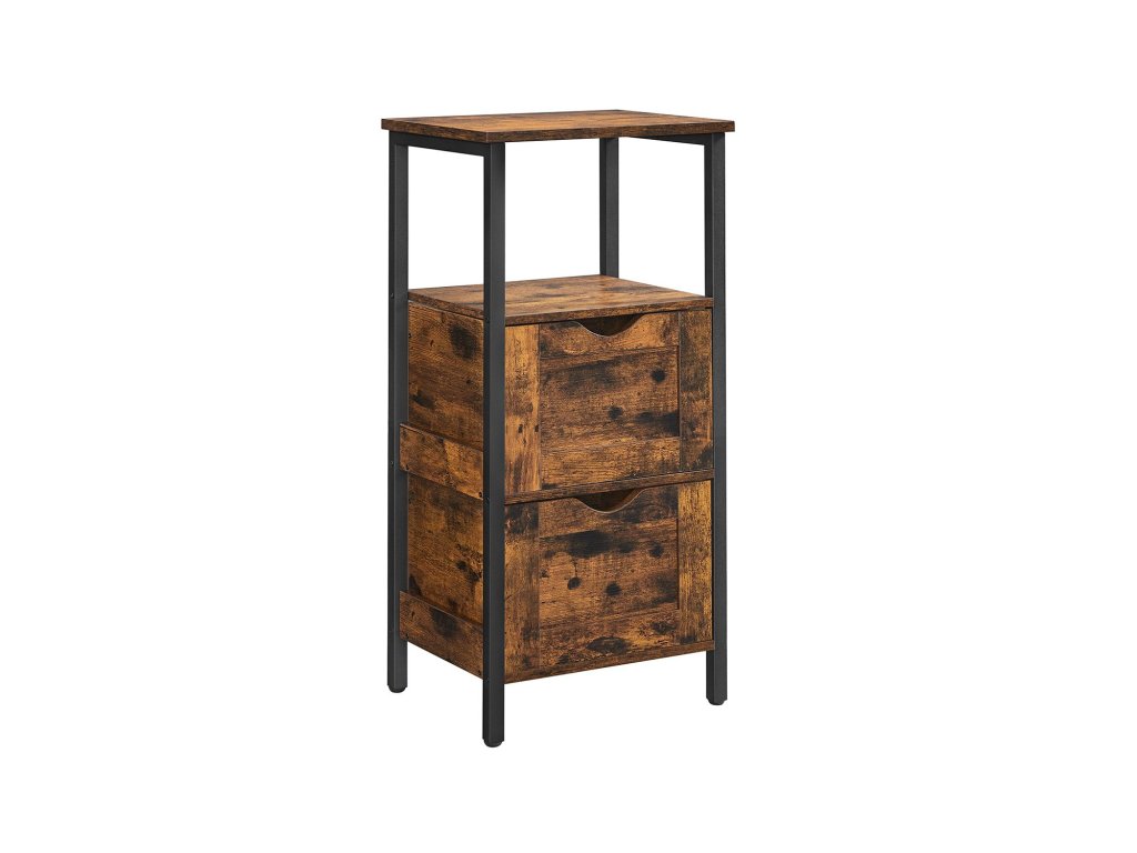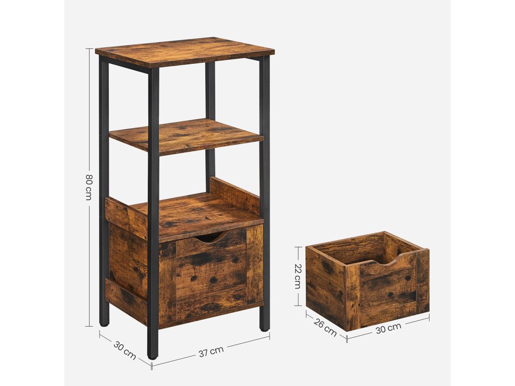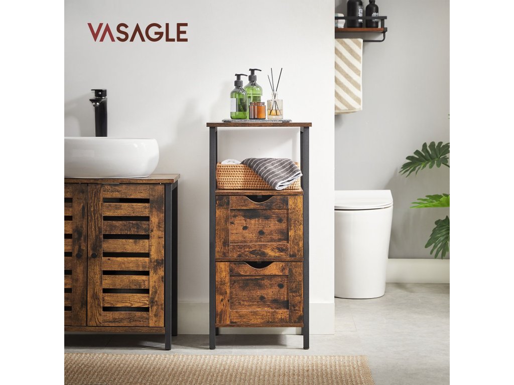 Koupelnová skříňka, 2 zásuvky, otevřená přihrádka, komoda, štíhlá, šetřící místo, koupelnový nábytek, 37 x 30 x 80 cm, Vintage hnědo-černál.