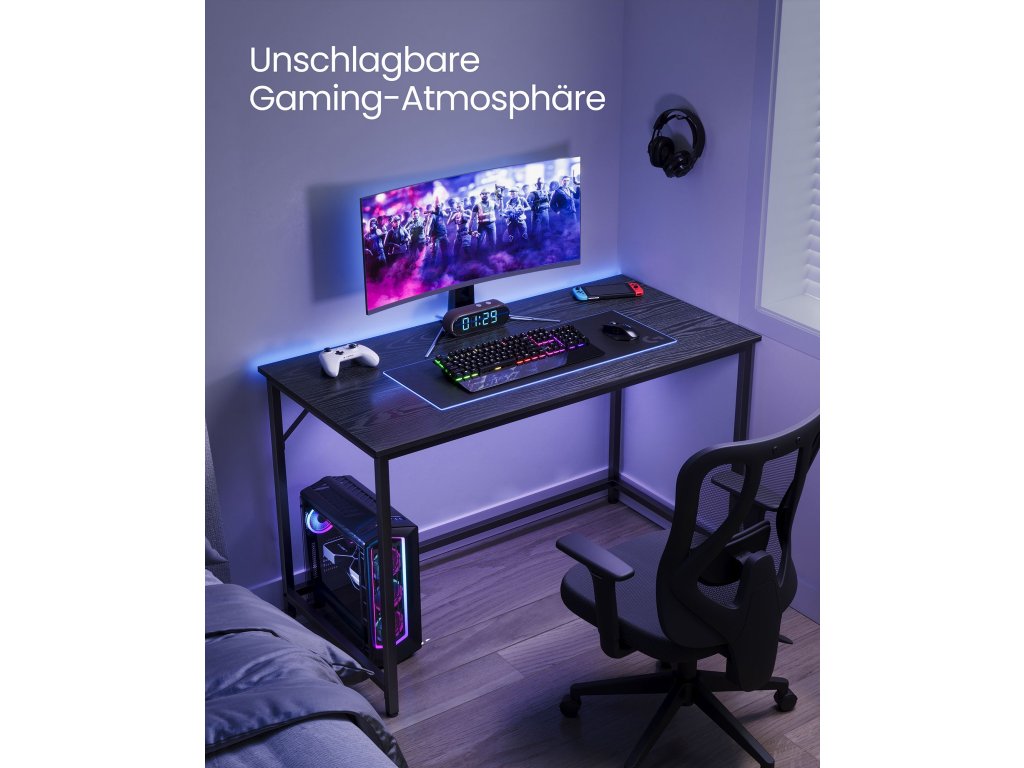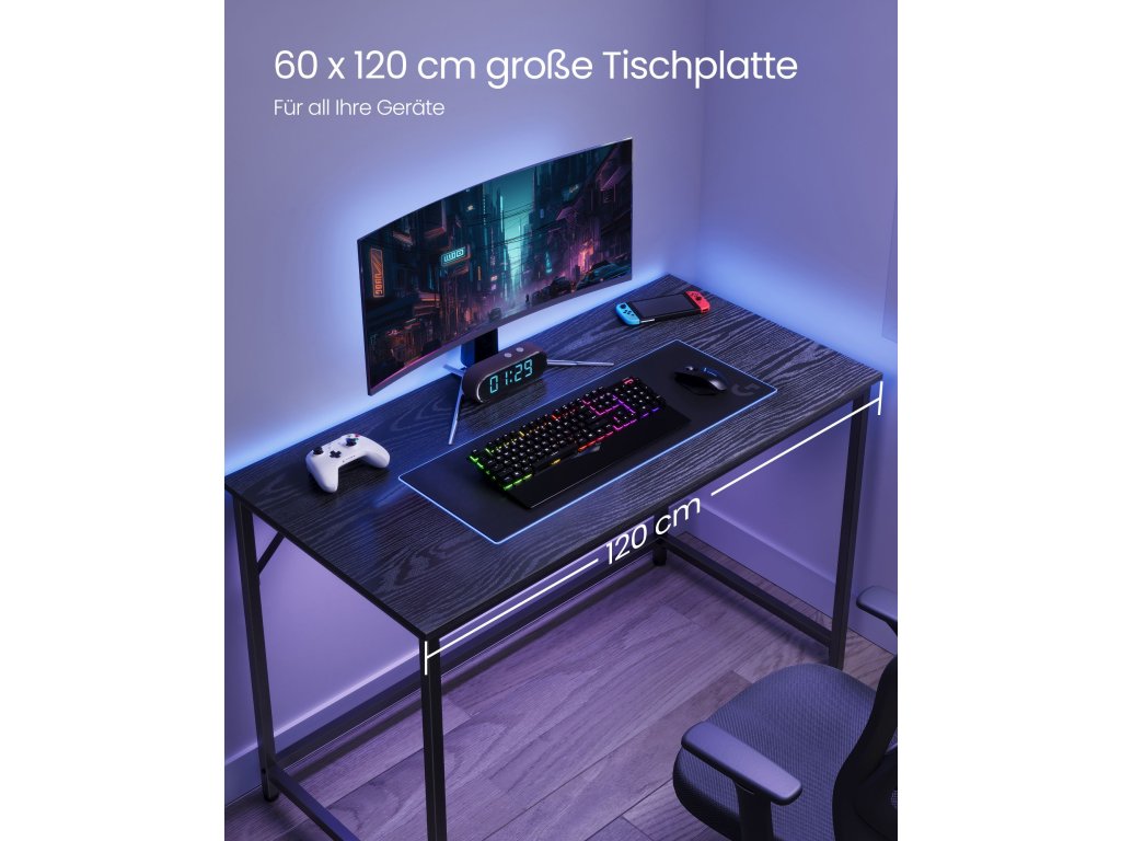 Vylepšete svůj pracovní prostor Tento stůl s plochou 60 x 120 cm je ideální pro práci nebo hraní her. Dostatek prostoru pro uložení dokumentů a esportů na dosah ruky [Robustní a odolný] Tento stůl je navržen z kvalitní dřevotřísky a ocelového rámu vyztuženého tyčemi, má pevnou konstrukci a unese až 50 kg. Pracovní prostor, který poskytuje, je spolehlivý a odolný. [Trendy industriální styl] Tento herní stůl má stylizovaný černý kovový rám a dřevěný černý povrch. Její moderní vzhled dodává atmosféru malého indusu, který se hodí do každé místnosti. [Sestavení bez skládačky] Díky očíslovaným dílům a ilustrovaným návodům je sestavení tohoto malého stolu hračkou. Budete tak mít více času na práci a budete méně pracovat s nástroji. [Práce bez kývání] Nastavitelné nohy stolu zlepšují stabilitu na mírně nerovných podlahách, pracovní plocha je dobře stabilní a během používání se nekýve."| Kategorie: | Psací a pracovní stoly |