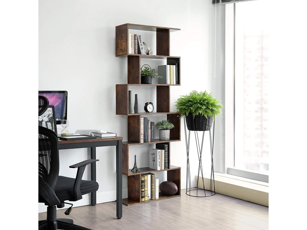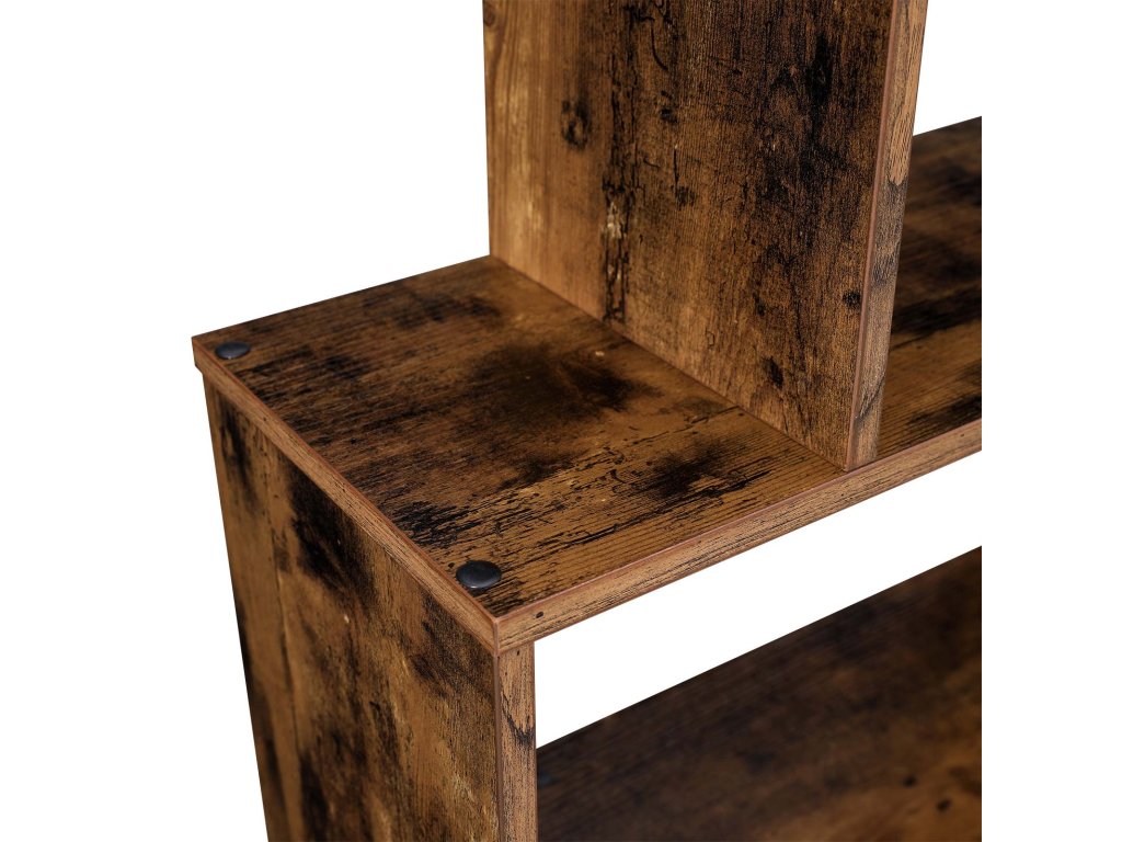 Dřevěná knihovna, kostkový regál a rozdělovač místností, volně stojící dekorativní úložné regály, 6stupňová police na knihy, rustikální hnědá.