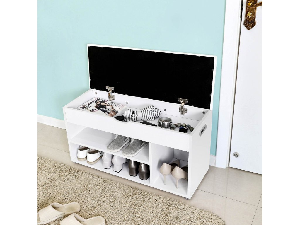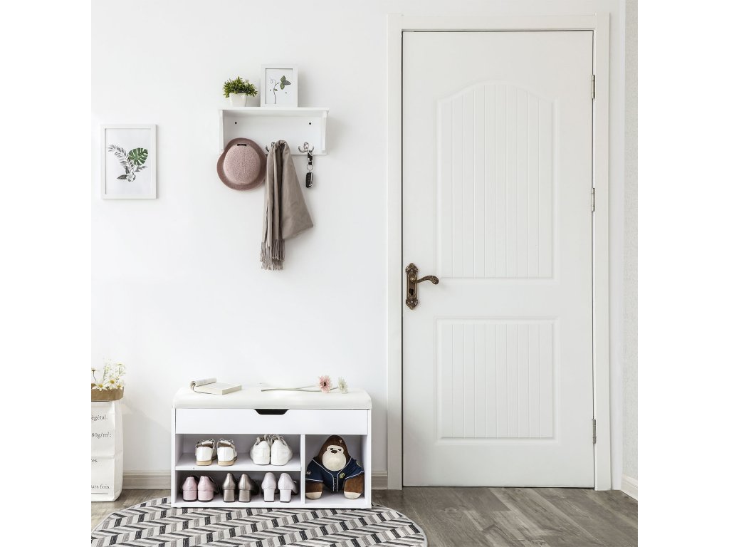 Dřevěná lavice na boty, sedátko s úložným prostorem Paaed, předsíňová skříňka se 2 policemi a skrytou truhlou, bílá.
