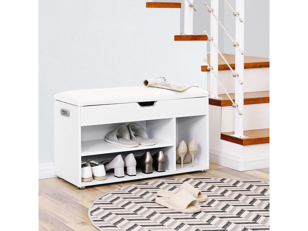 Už žádné hromady bot: Ploché boty (až 6 párů) ve 2 malých přihrádkách a kotníkové boty ve velké přihrádce - různé boty si zde najdou své vlastní místo. Pod sedací plochou se nachází také přihrádka, do které můžete uložit botník, napínák na boty, leštidlo na boty a kartáč.Snadná montáž: K sestavení této lavice s čalouněným sedákem nemusíte být odborník. Snadný návod (čeština není zaručena) a očíslované díly vám pomohou sestavit tento kus nábytku během chvilky.Úspora místa a času: Uložením bot roztroušených v předsíni do tohoto botníku ušetříte cenné místo v předsíni; PU potah sedadla a dřevotřískové desky se také snadno čistí - stačí je otřít vlhkým hadříkem;Co získáte: Kus nábytku, který kombinuje lavici a botník. Přijďte domů, posaďte se na tuto lavici, pohodlně si vyzujte boty a přehledně je uložte do spodních přihrádek - vaše pohodlí je naším cílem.| Kategorie: | Lavice do předsíně |