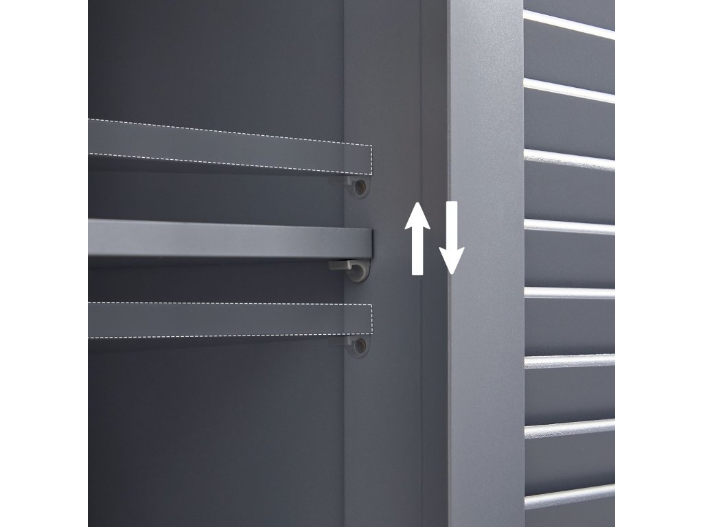 Make It Chic: Všechny prvky této skříňky se dokonale doplňují: matná šedá povrchová úprava, stylové žaluziové dveře a celková jednoduchost profilu; vnesou do vaší koupele a vstávání lehkost a uklidňující nádech;Více než jen dobrý vzhled: Tato úložná skříň přesvědčí kromě svého vzhledu také svou konstrukcí. Snadno čistitelný povrch, odolné dřevěné panely a propracované detaily společně zajišťují dlouhou životnost.Štěstí je připraveno! Otevřete jeho okenice... čisté ručníky nebo náhradní toaletní papír jsou na polici se 3 možnostmi výšky. Nad ní? Vaše často používané předměty jsou v otevřené přihrádce. A? Parfémy nebo kosmetické potřeby najdou místo na horní ploše!.