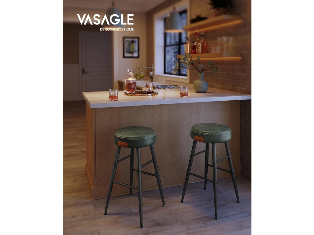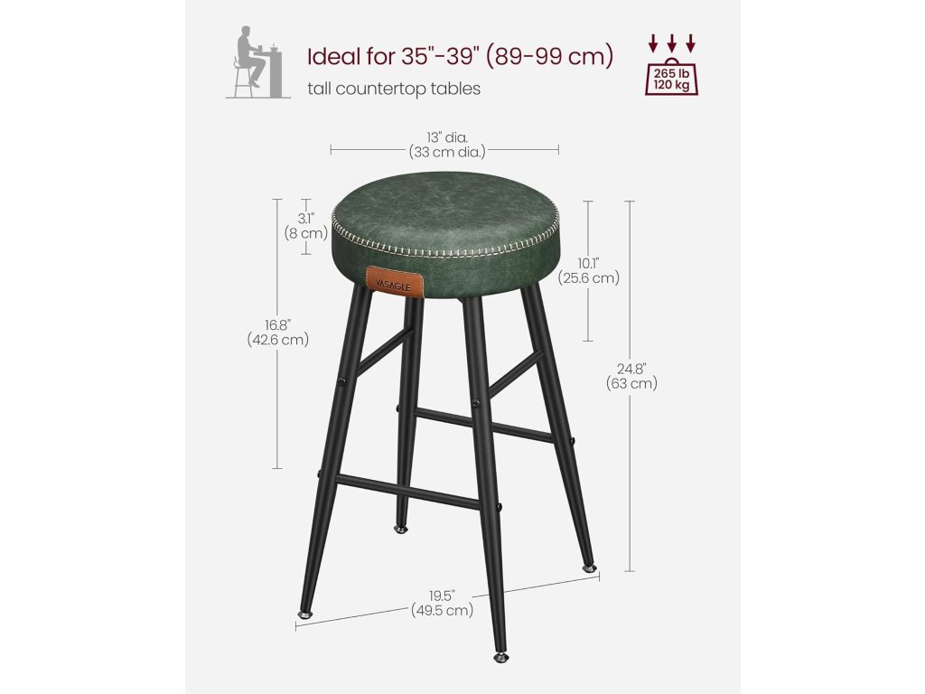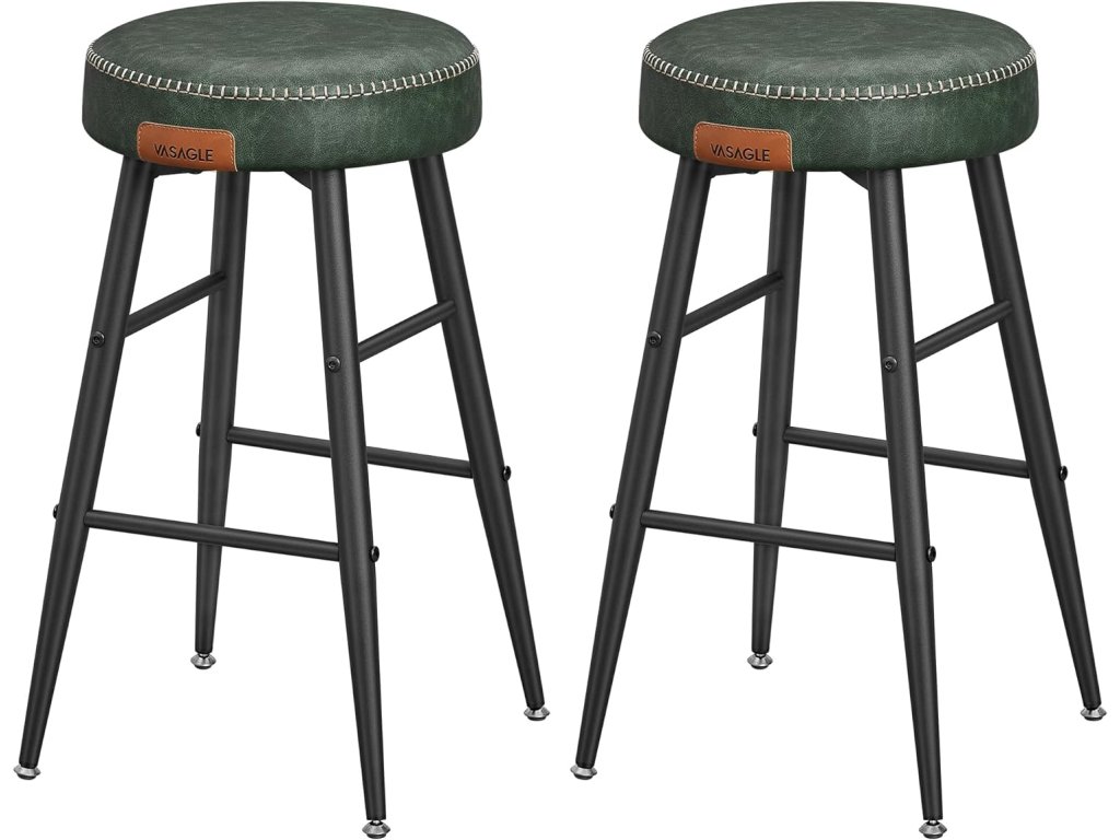 Barové židle, sada 2 kusů, prošívaná umělá kůže, výška 24,8", snadná montáž, lesní zeleň.