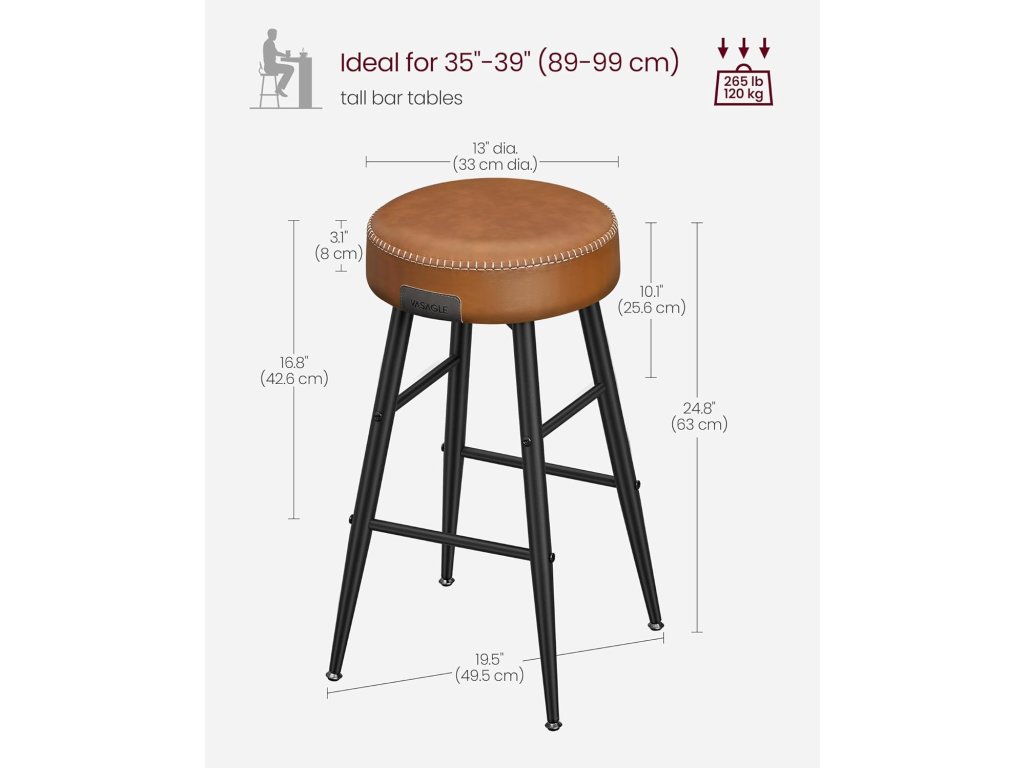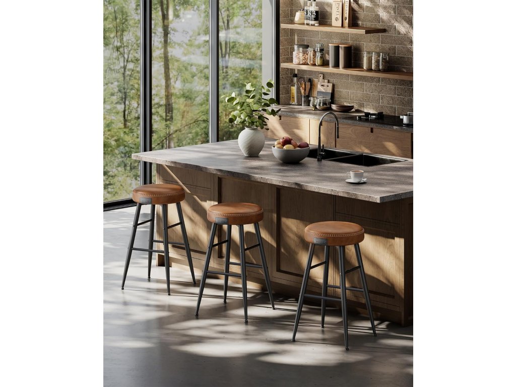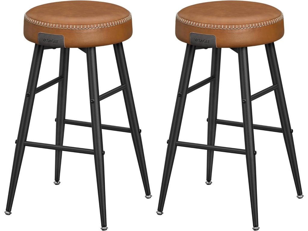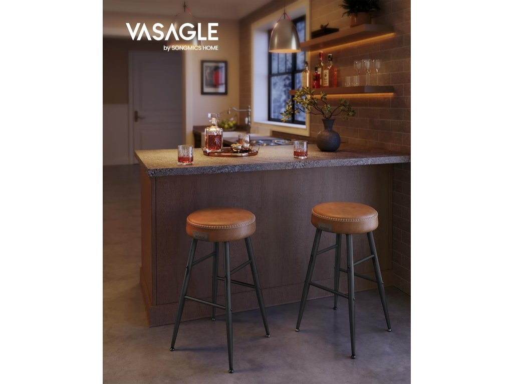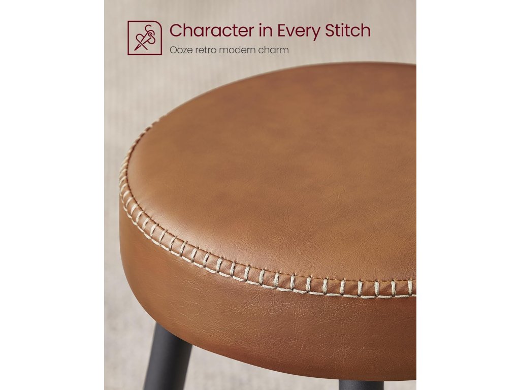 Barové stoličky, sada 2 kusů, kuchyňské stoličky, prošívaná umělá kůže, výška 24,8", snadná montáž, karamelově hnědá barva.