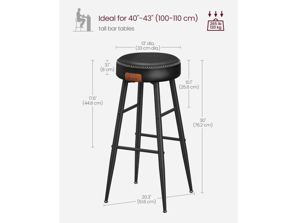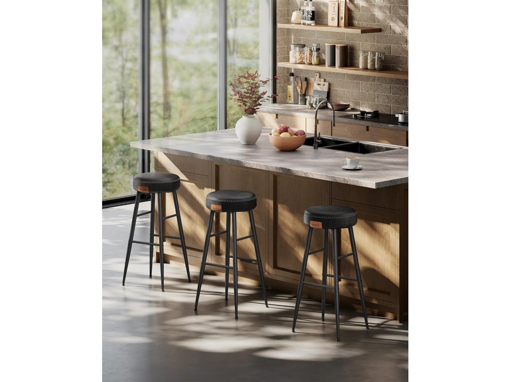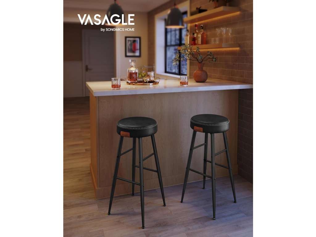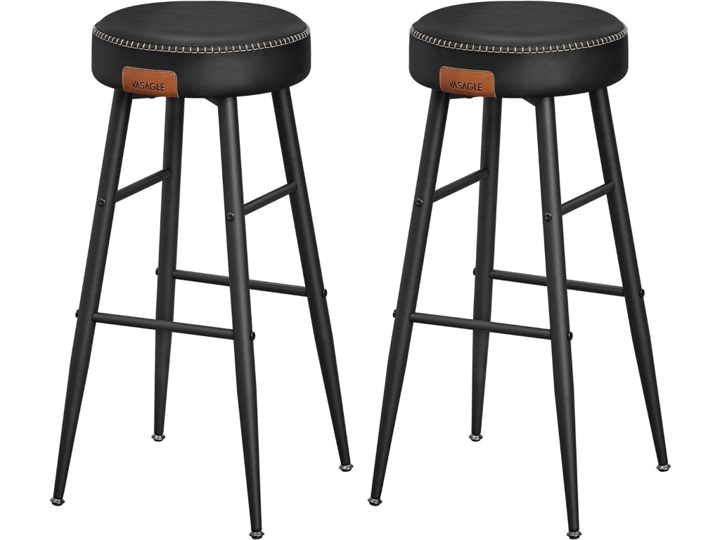 Barové stoličky, sada 2 kusů, kuchyňské stoličky, snídaňové stoličky, prošívaná umělá kůže, výška 30", pro domácnost, bar, jídelnu, snadná montáž, jednoduše černé provedení.
