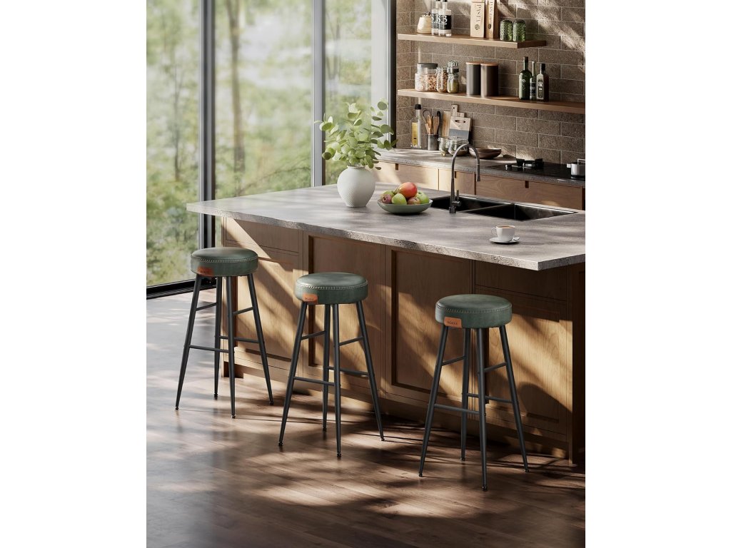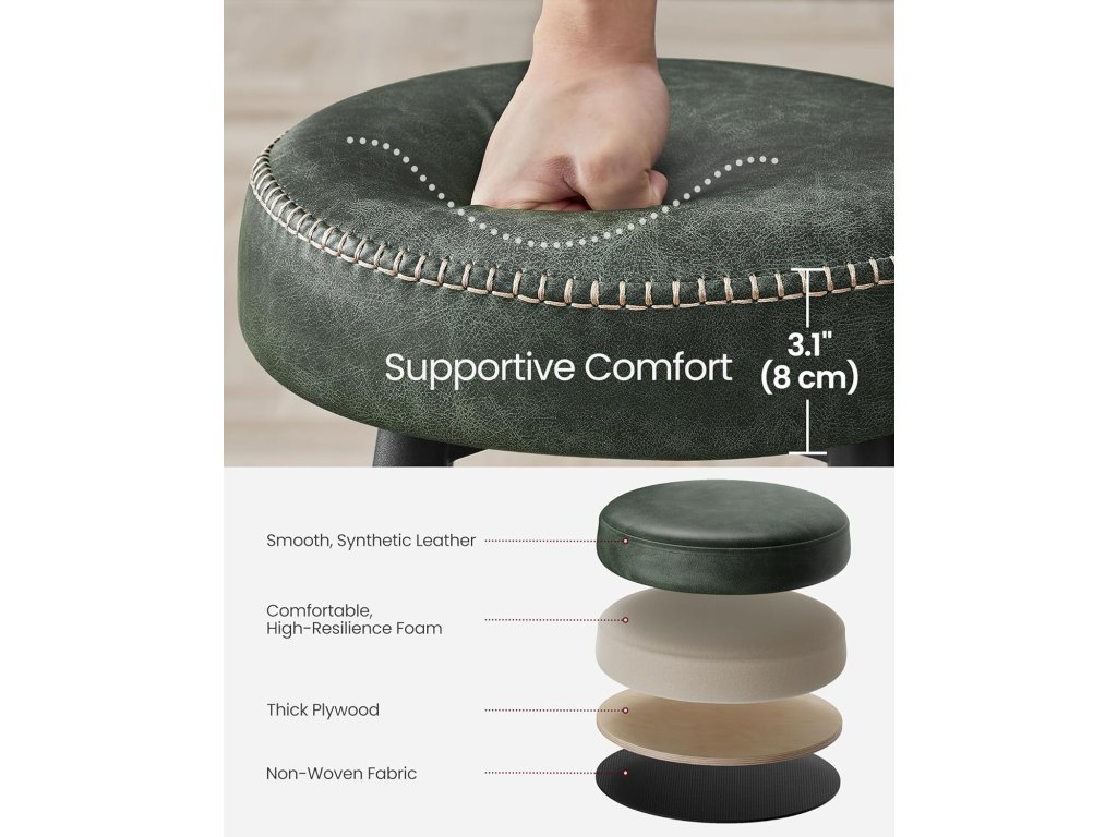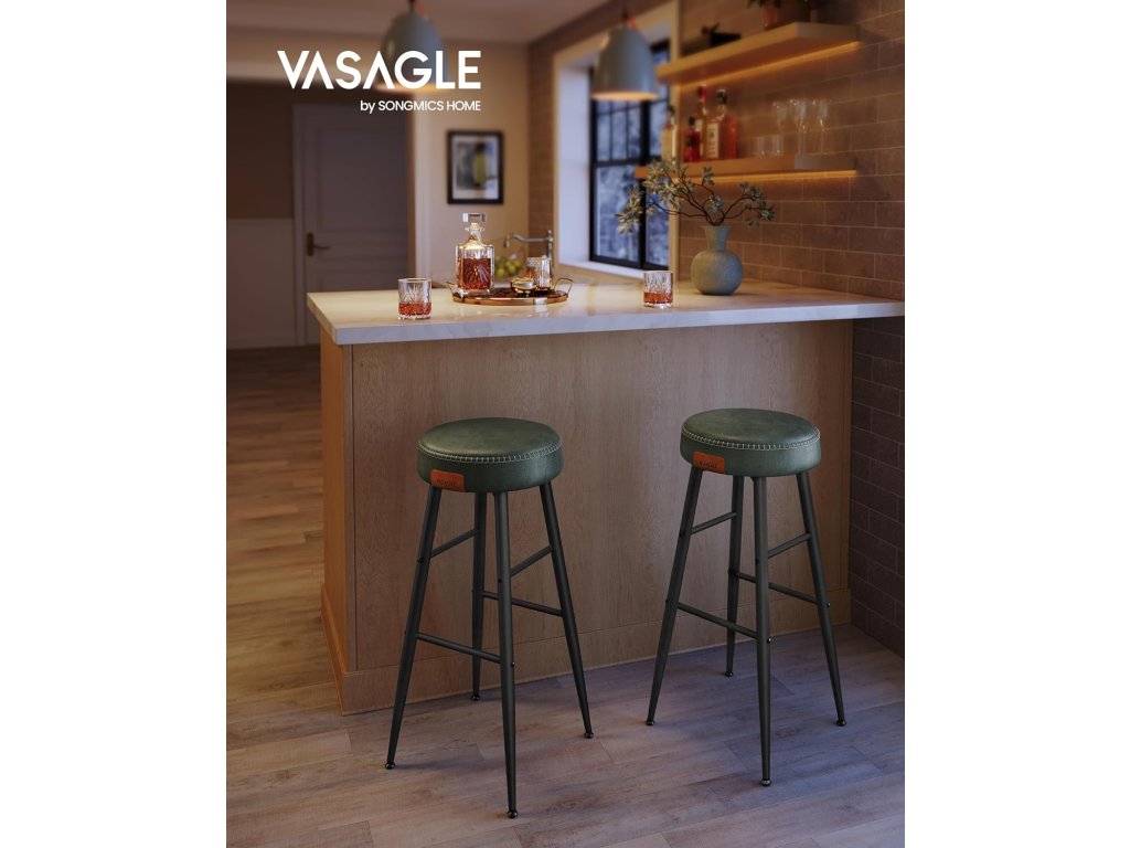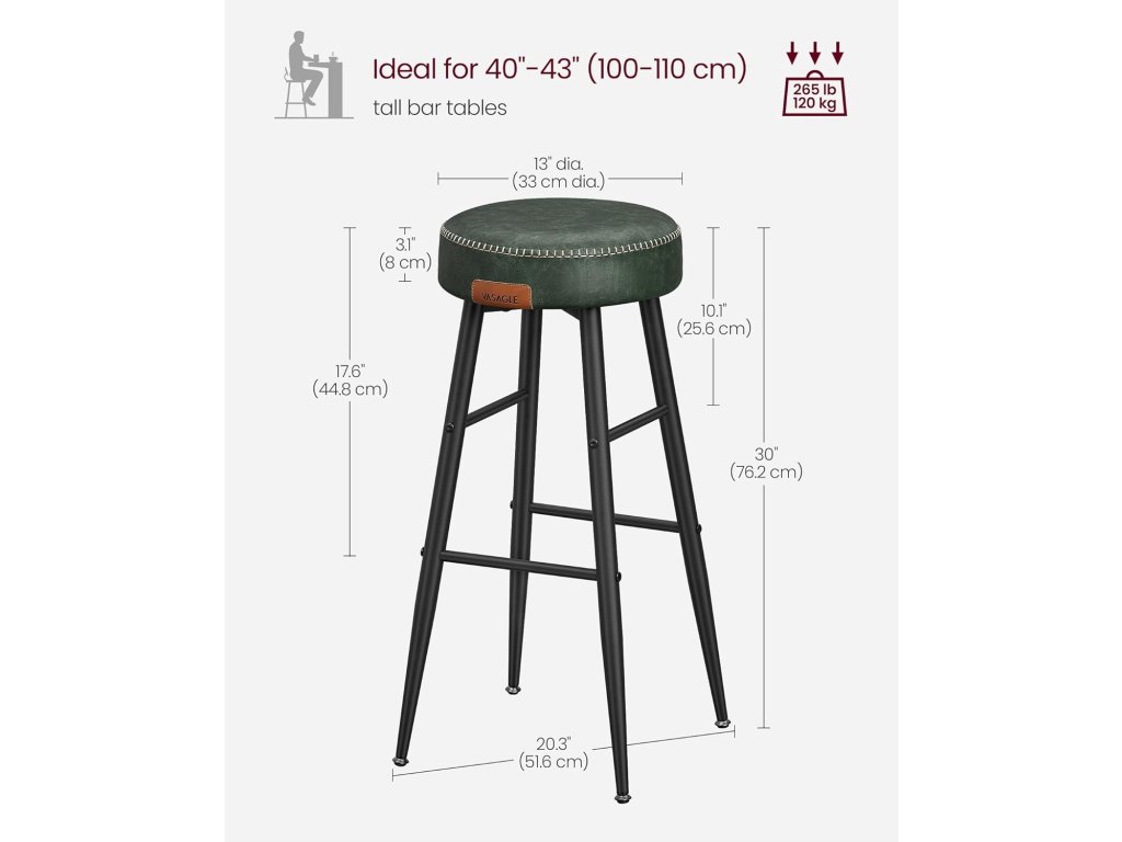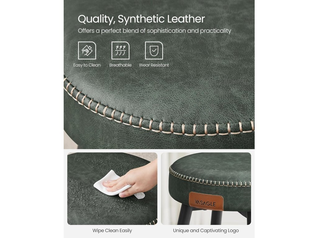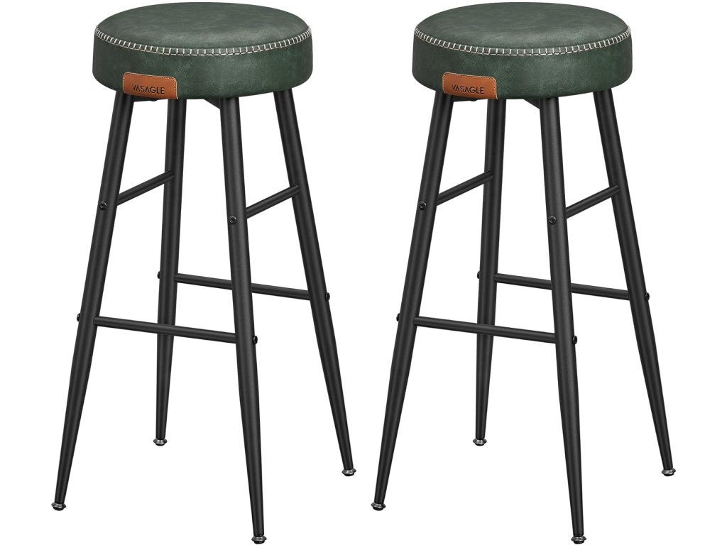 Barové židle, sada 2 kusů, snídaňové židle, prošívaná umělá kůže, 30" vysoká, pro domácnost, bar, jídelnu, snadná montáž, lesní zelená.
