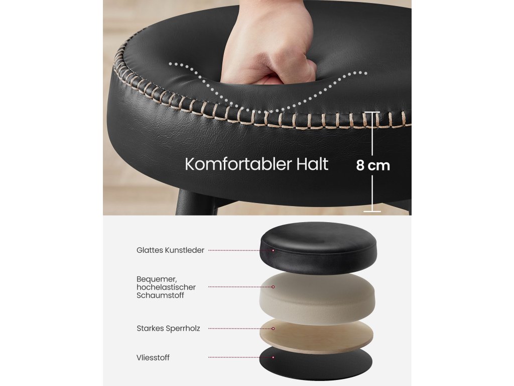 Vylepšete svůj prostor Sledujte kombinaci syntetické kůže, rafinovaného prošívání a elegantních zúžených nohou u těchto barových židlí z kolekce VASAGLE EKHO, která je hmatatelnou poctou duchu řemesel. povznesení vašeho domova do nových výšin sofistikovanostiPohodlí při každém sezení Přejeďte rukou po hladkém potahu a pak se pohodlně uvelebte v podpůrném luxusu 3,1" silné tvarované pěny 58D. Tyto barové židle poskytují pohodlné sezení, které vydrží a projde zkouškou času.Přizpůsobivá elegance Tato sada 2 barových židlí s unikátními stupňovitými opěrkami nohou představuje dokonalou změnu. Snadno se přizpůsobí přátelům všech výšek a nabízejí bezkonkurenční kombinaci pohodlí a všestrannosti.Pevná stabilita, šetrná k podlaze S rozkročenými kovovými nohami, které tvoří pevný základ, doplněný otočnými vyrovnávacími nožkami. tyto kuchyňské stoličky nabízejí nejen neochvějnou stabilitu na nerovném povrchu, ale také slibují, že se nepoškrábou.Čistota a elegance bez námahy] Občasné rozlití? Žádné obavy! Voděodolný potah ze syntetické kůže, který lze v mžiku otřít. Matné ocelové nohy jsou odolné proti poškrábání a zachovávají si svůj sofistikovaný půvab i při každodenním používání.