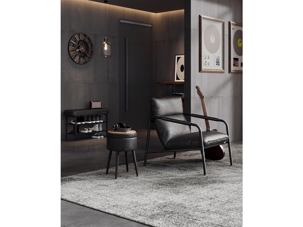 Lavice na boty, sedátko, vstupní prostor, umělá kůže, švy, styl 60. let, moderní, maximální zatížení 135 kg, 30 x 80 x 50 cm, inkoustově černá.