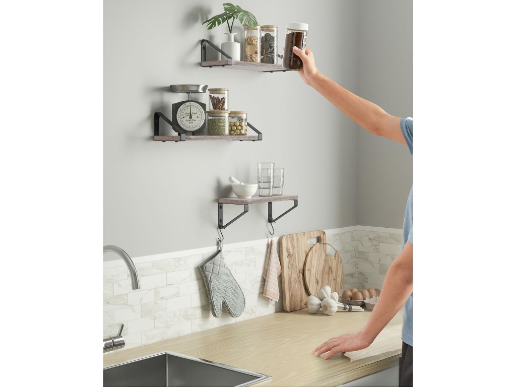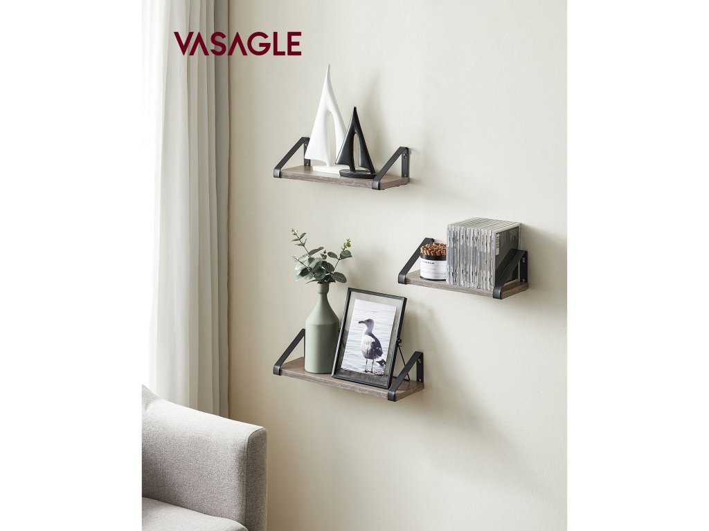 It's Showtime! Dřímají vaše dekorativní předměty stále schované v krabici? Pak bije hodina těchto 3 nástěnných polic. Dopřejte svým dekoracím čestné místo a prezentujte je stylově.Vytvořit vintage atmosféru Na tyto atraktivní plovoucí police umístěte pěkné doplňky, které budou hrát hlavní roli. Kombinace police greiger a černé konzoly navíc dodá vašim čtyřem stěnám jedinečný vintage nádech.Dobré materiály mluví samy za sebe: Robustní dřevotřískové desky a ocelové držáky zajišťují dlouhou životnost a dobrou stabilitu, i když jsou tyto police naplněny knihami, rostlinami v květináčích nebo jinými předměty. koření nebo toaletní potřebyUsnadněte si život Váš každodenní život by měl být co nejpohodlnější. Proto jsme vyvinuli tyto jednoduché plovoucí police, které lze sestavit v několika málo krocích. 2 způsoby montáže (držáky nahoře nebo dole) vám nabízejí více možností pro rozvoj vaší kreativity.Co dostanete 3 nástěnné police, které lze snadno sestavit díky označeným dílům a přiloženému návodu (čeština není zaručena). Dopřejte si tyto police a dodejte svým stěnám zvláštní dekorativní nádech.| Kategorie: | Regály a poličky |
