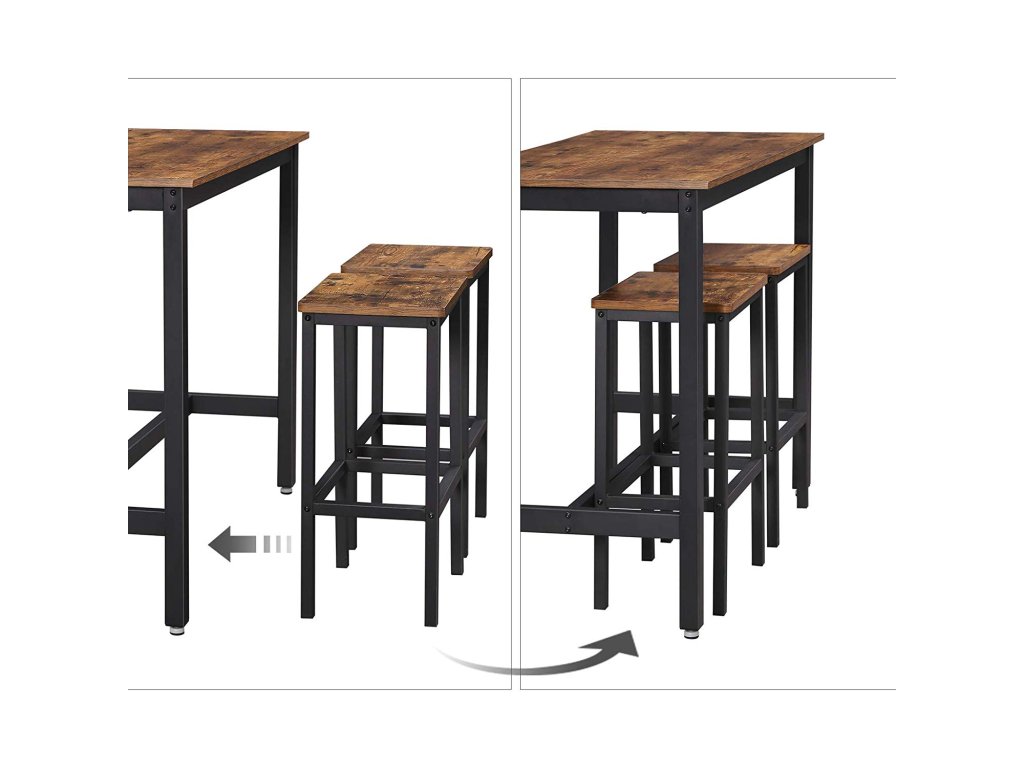 Jídelní set, barový stůl s 2 barovými židlemi, snídaňový jídelní stůl a židle, kuchyňský pult s barovými jídelními židlemi, do kuchyně, obývacího pokoje, jídelny, rustikální hnědá.