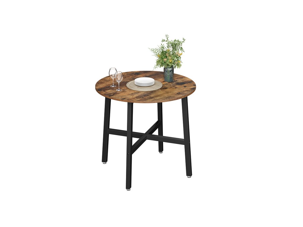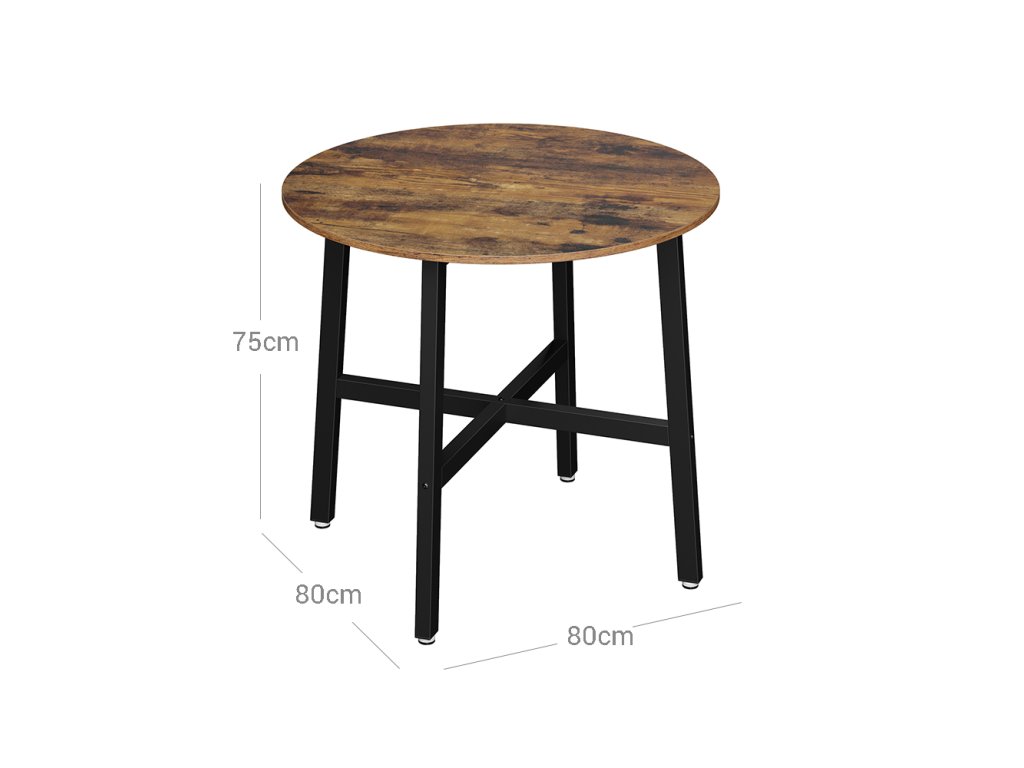 Jídelní stůl, kulatý kuchyňský stůl, do obývacího pokoje, kanceláře, 80 x 75 cm (průměr x výška), industriální styl, rustikální hnědá a černá.