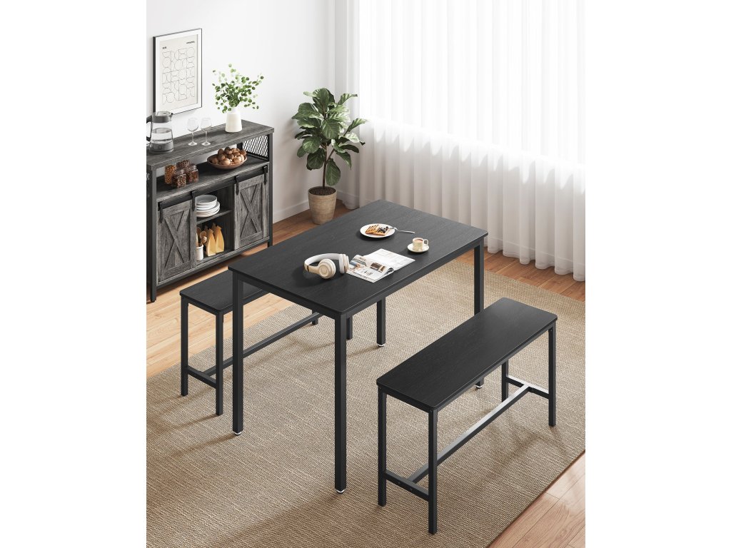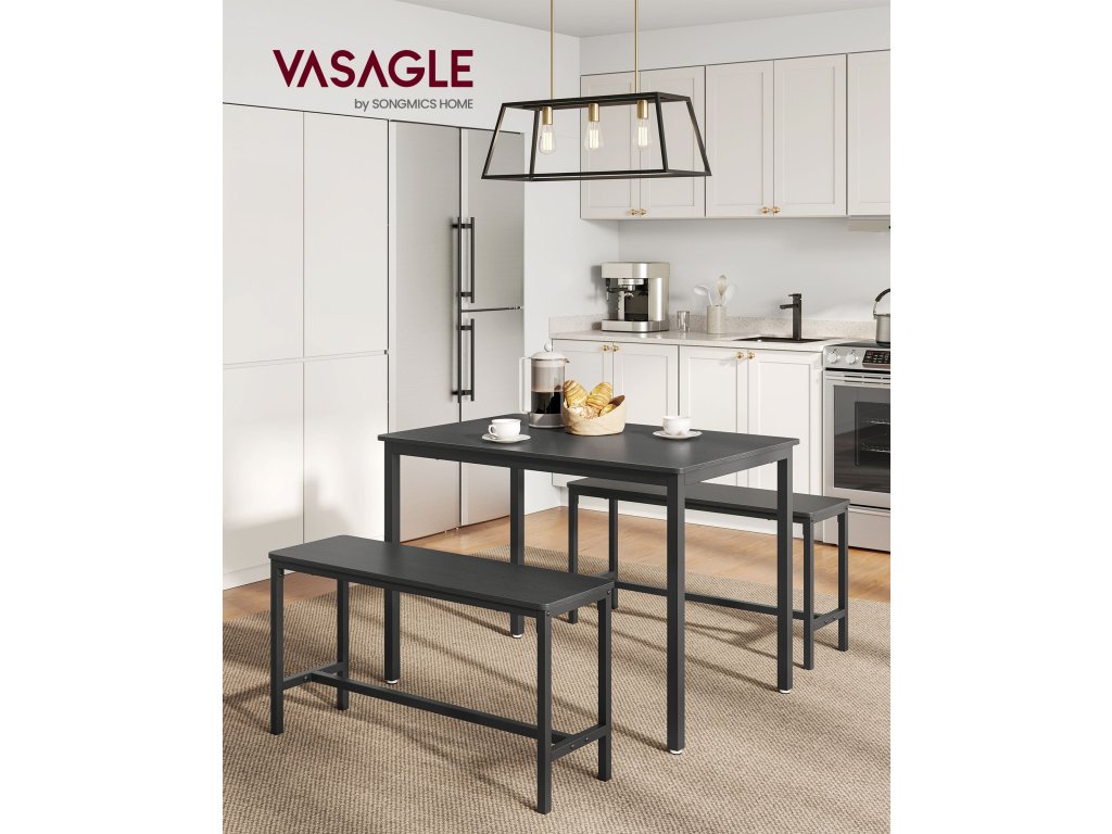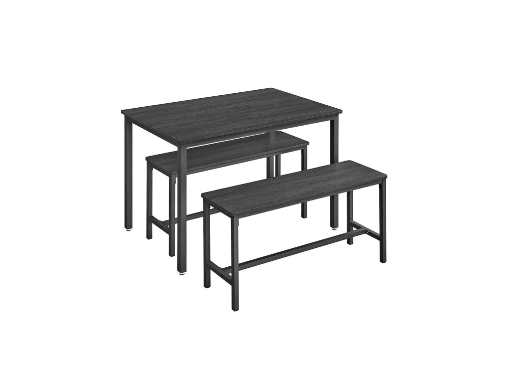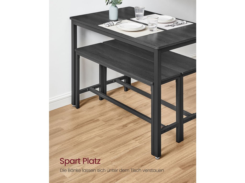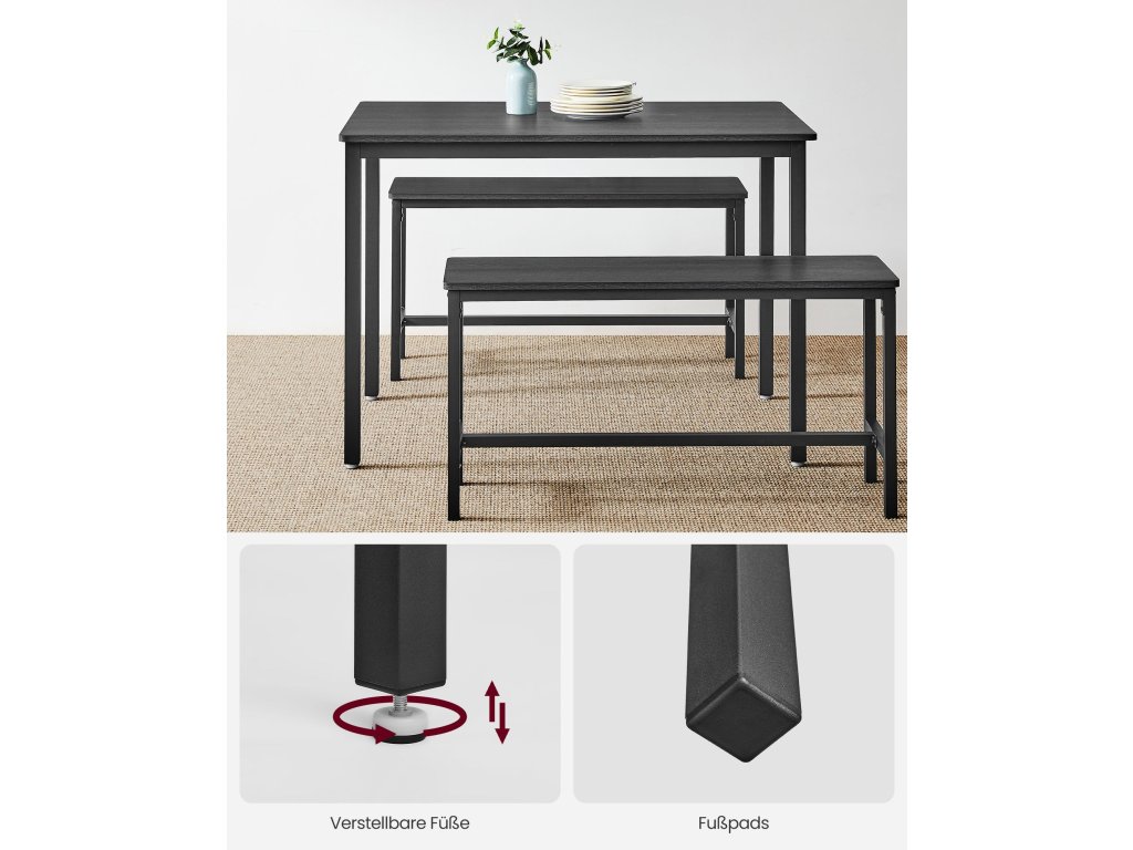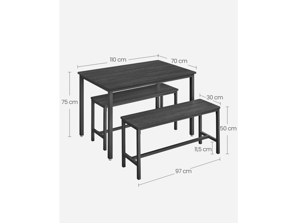 Jídelní stůl se 2 lavicemi, sada 3 kusů, kuchyňský stůl 70 x 110 x 75 cm, 2 lavice po 30 x 97 x 50 cm, ocelový rám, jasanově černá barva.