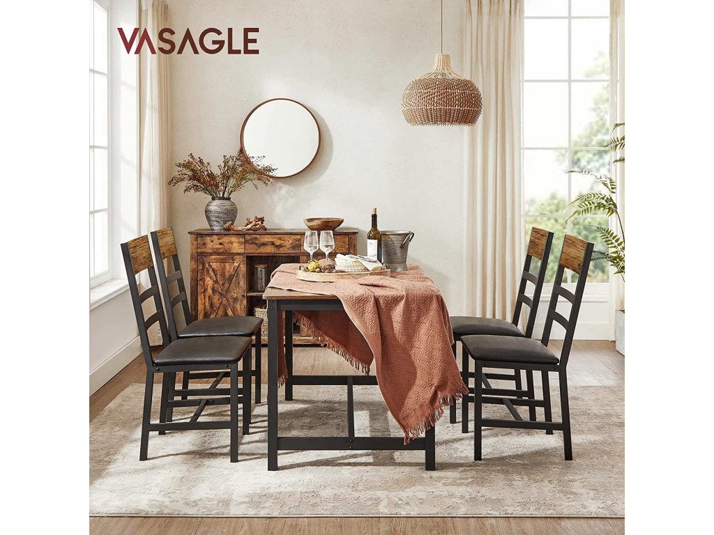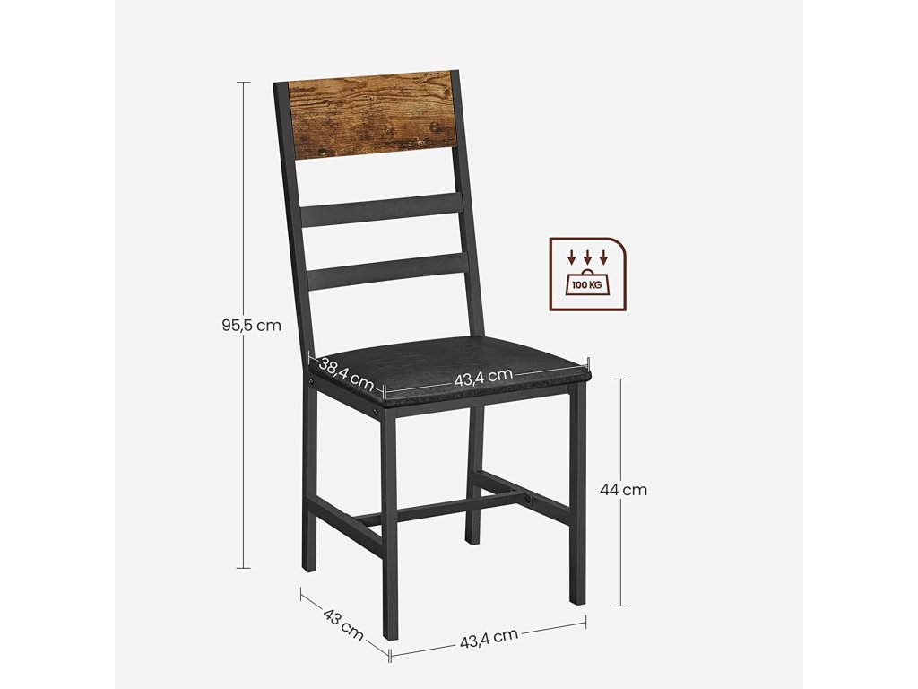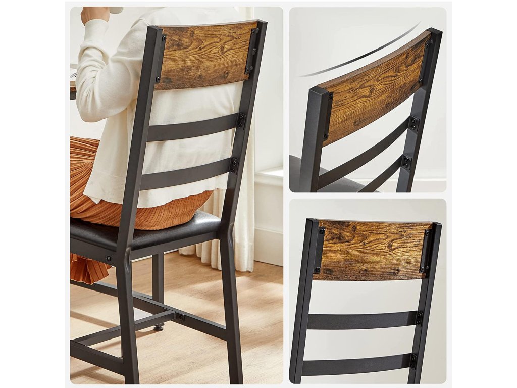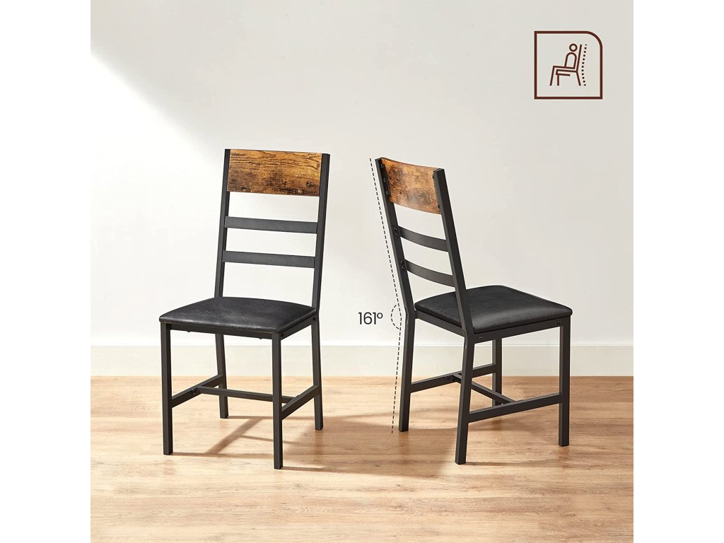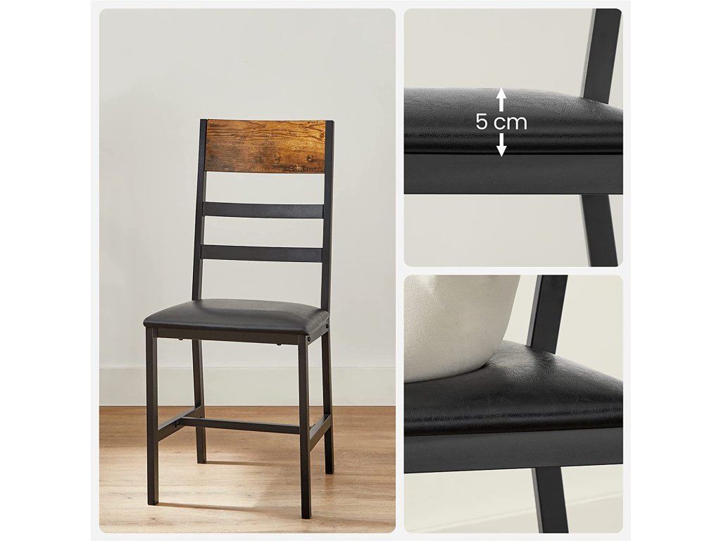 Ergonomický design: úhel mezi mírně nakloněným sedákem a opěradlem je 105°. Mírně skloněné opěradlo nabízí vysokou úroveň pohodlí při sezení, takže si můžete odpočinout a užít si pár klidných chvil.Pevná konstrukce a kvalitní materiál: šikmé nohy, příčka pod sedadlem kovový rám a robustní dřevotřísková deska - to vše zajišťuje židlím vysokou stabilitu (nosnost každé z nich až 100 kg).Pohodlné? Určitě. Ergonomické opěradlo je pohodlné už samo o sobě, ale vrcholem je 5 cm silné pěnové polstrování sedáku. Můžete si tak pohodlně vychutnat své gurmánské jídlo.