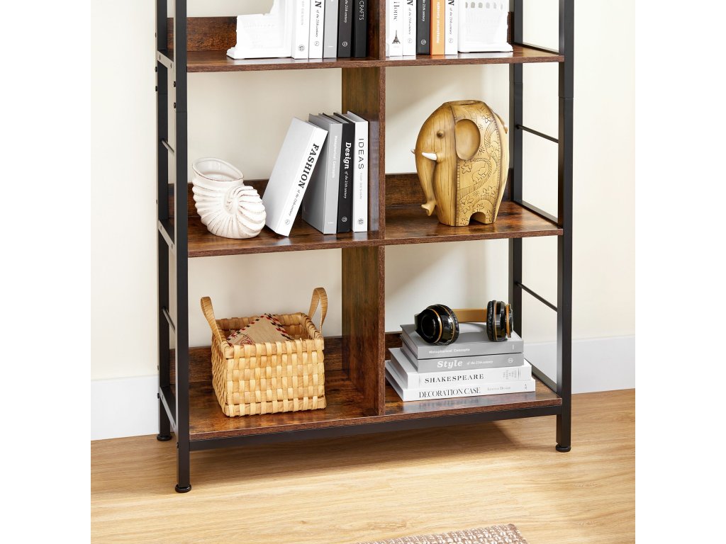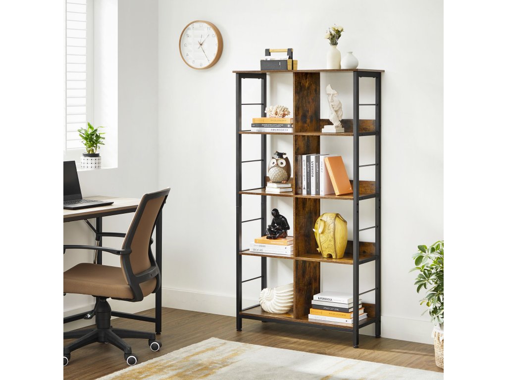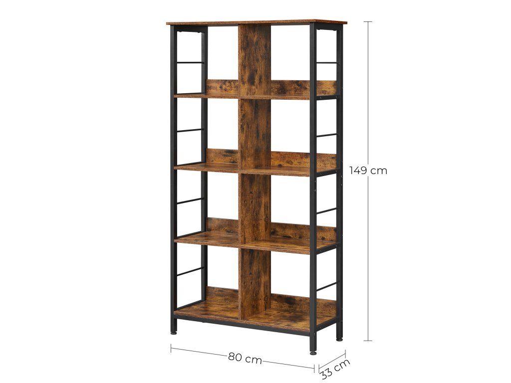 Prolog: Tento čtyřpatrový regál s 8 otevřenými přihrádkami si můžete postavit do obývacího pokoje, kanceláře nebo ložnice a vytvořit si tak útulný čtenářský koutek, o jakém sníte. Vezměte si horký nápoj a ponořte se do rozmanitých příběhů...Průmyslový příběh: Ne, tohle není sci-fi, tento industriální regál skutečně vnese do vašeho interiéru nadčasový šarm!Létající knihy? Tlustá šance: Alespoň ne s touto knihovnou, která je vybavena zadními panely a nastavitelnými nožičkami pro větší stabilitu! S ním vaše knihy nebudou padat a vždy si zachovají své krásné obaly bez známek.Další příběh! S prvotřídními dřevotřískovými deskami a pevným ocelovým rámem tento úložný regál o rozměrech 80 x 33 x 149 cm vás bude provázet při opakovaném čtení vašich oblíbených knih! Nezáleží na tom, zda jde o velké romány nebo sérii komiksů, pojme je všechny až do hmotnosti 50 kg.