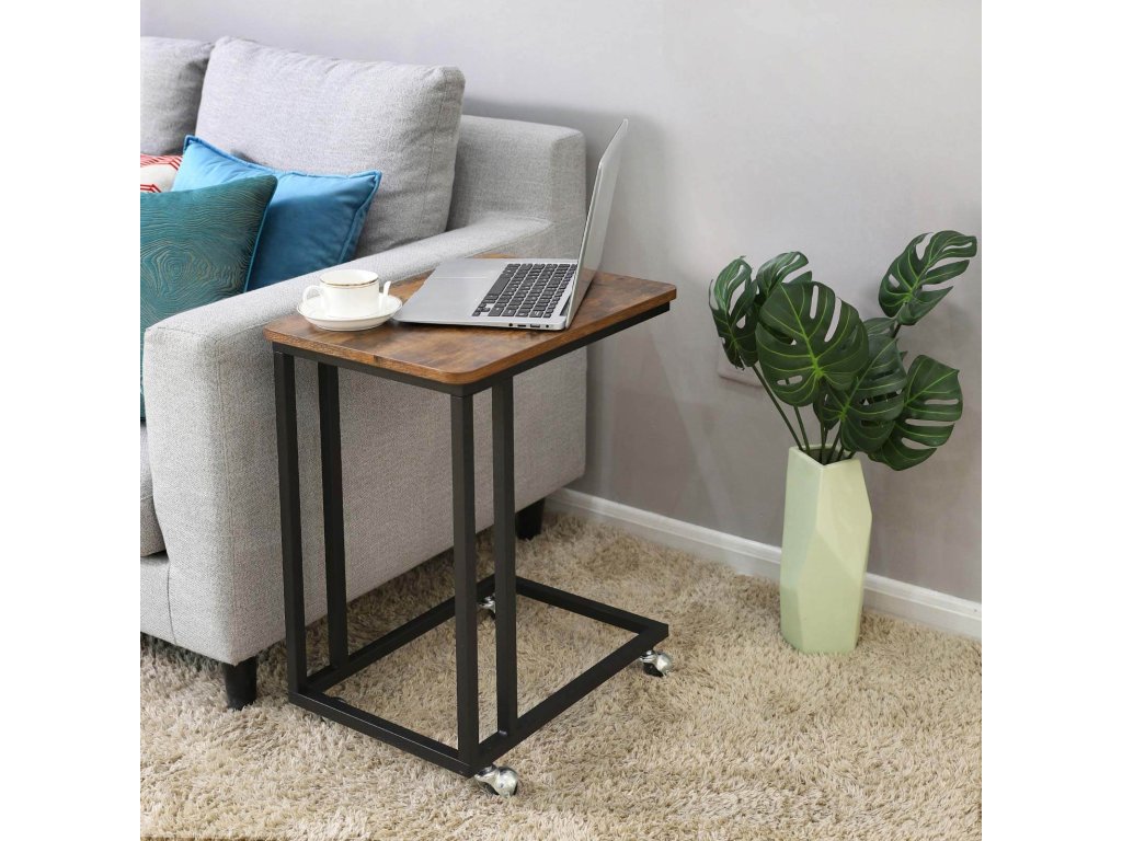 Něco jistého: Některý nábytek vypadá dobře, ale není příliš praktický. Jiný je sice funkční, ale působí chladně a nudně. Ne však tento odkládací stolek - díky teplým odstínům dřeva, stabilní stolní desce a 4 kolečkům získáte to nejlepší z obou světů.Dokonalý design: Právě robustní matně černý ocelový rám a robustní rustikální hnědá deska jsou elegantní kombinací stylů, díky níž tento pojízdný konferenční stolek vyniká; se může pochlubit mimořádnou odolností a velkou celkovou nosností až 25 kg;Snídaně do postele? Tento stolek má čtyři kolečka, díky nimž ho snadno zasunete pod pohovku nebo postel (je třeba 7 cm volného prostoru). můžete konečně zase rozmazlovat svou drahou polovičku snídaní do postele.