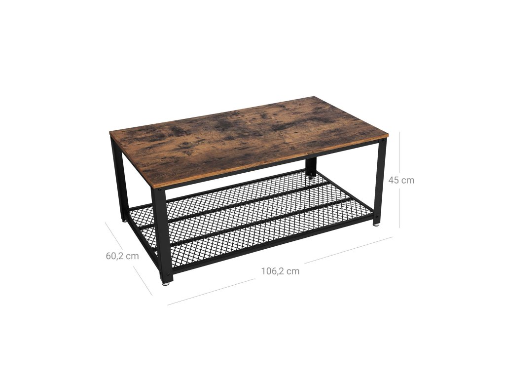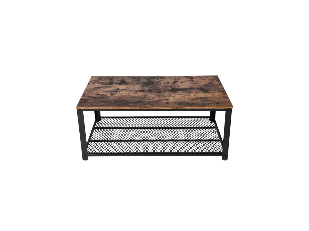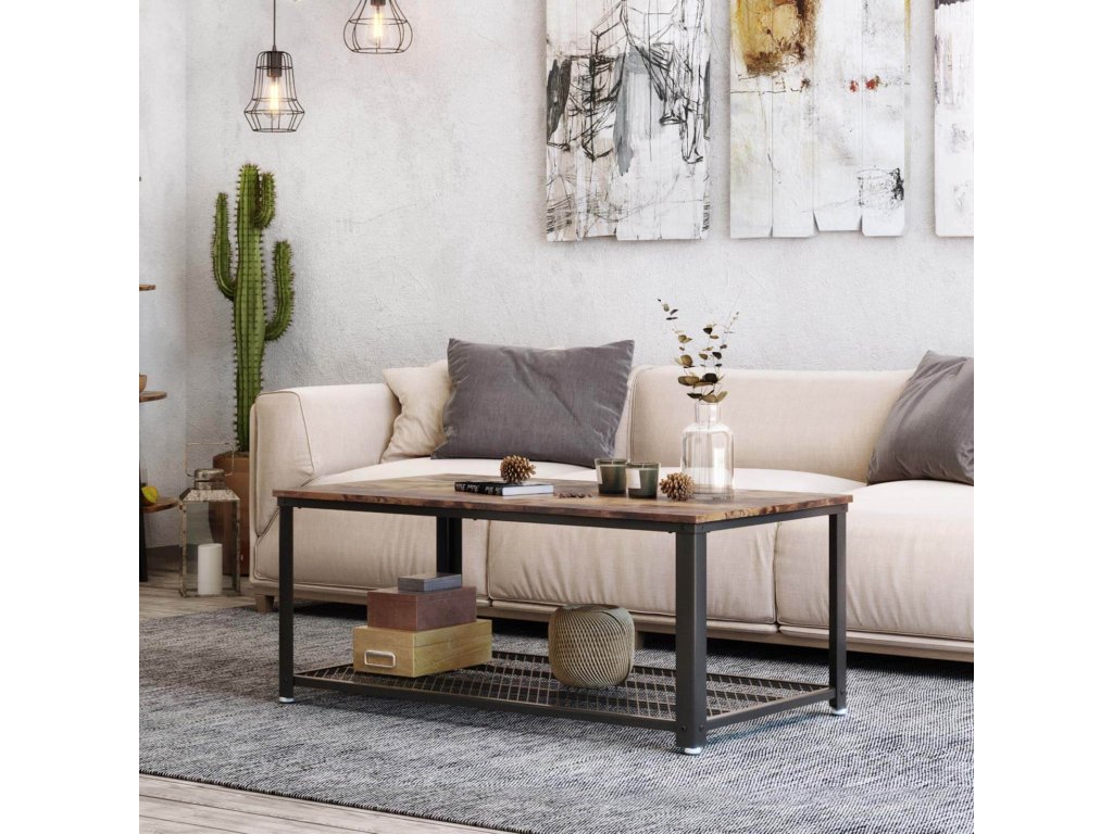 Konferenční stolek, koktejlový stolek, snadno sestavitelný, industriální boční stolek, do ložnice, s kovovým rámem, s úložnou policí, do obývacího pokoje, ložnice, rustikální hnědá.