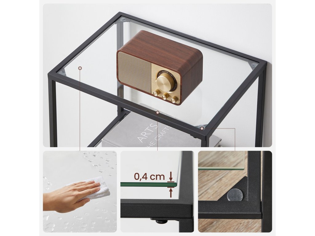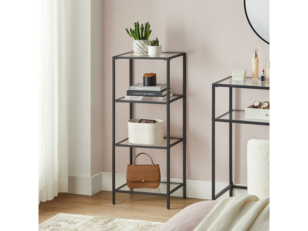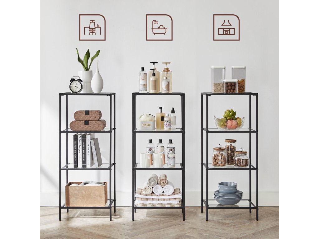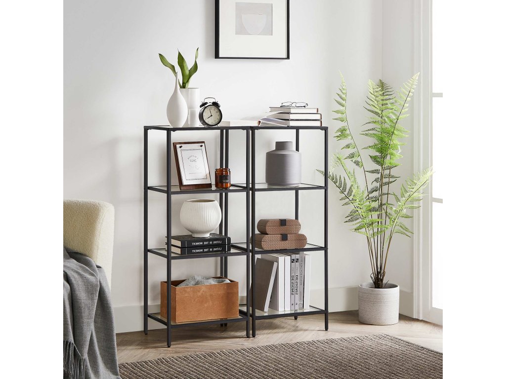 Překonáváme minimalistické tóny: jednoduché, stylové a praktické - tato čtyřpatrová policová skříňka má přímočarý a vzdušný vzhled, takže si můžete své pokoje snadno zařídit pomocí černého tamponu.Pevný základ: Každá dobrá kniha a ozdoba vyžaduje pevný základ. Desky z tvrzeného skla o tloušťce 4 mm této moderní stojící police o rozměrech 40 x 30 x 95 cm jsou podepřeny robustním kovovým rámem a unesou až 10 kg.Flexibilní použití: stále hledáte prostorově úspornou polici do své kanceláře? Nebo co takhle moderní úložné řešení do ložnice? A co police na fotografie ve vaší ložnici?Snadno: tuto polici navrhl profesionál. Nemusí ji však montovat profesionál. Díky srozumitelnému návodu (ne v češtině) a označeným jednotlivým dílům je montáž hotová během chvilky.Stabilní opora: na tuto předsíňovou polici s nastavitelnými nožičkami umístěte cennou vázu nebo rostliny v květináčích. Díky nim a panelům z tvrzeného skla budou vaše oblíbené kousky na polici vždy stabilní.| Kategorie: | Knihovny |