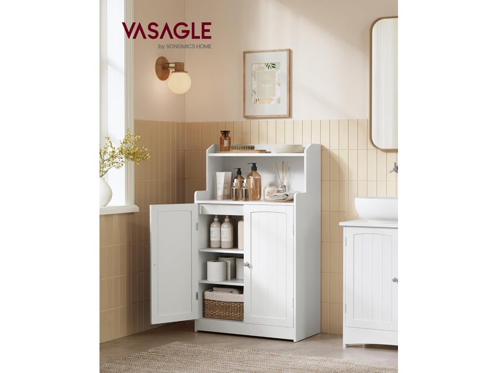 【Jednoduchá a snadno kombinovatelná】Rychlé linie a čistá bílá barva oživují tuto minimalistickou a elegantní skříňku, která se dobře hodí ke každému interiéru. Bude se dobře vyjímat v koupelně, jídelně nebo obývacím pokoji.