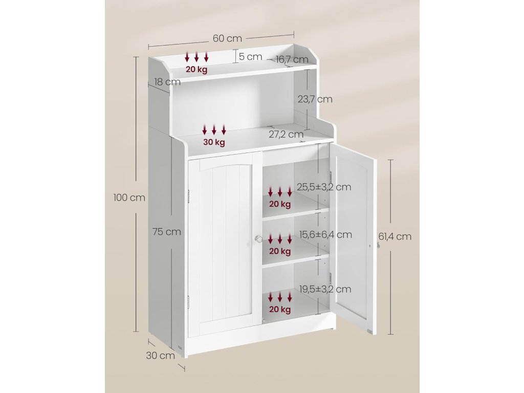Koupelnová skříňka, koupelnový nábytek se 2 dveřmi, 2 nastavitelné police, 30 x 60 x 100 cm, skříňka do jídelny, kuchyně, obývacího pokoje, bílá.
