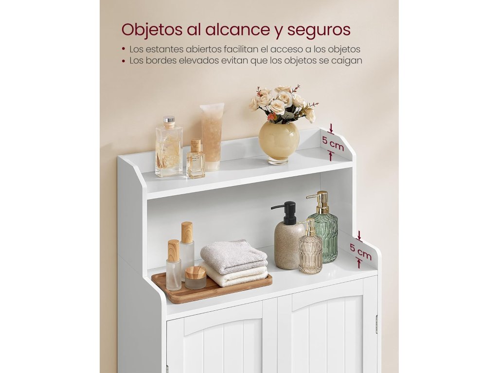 【BEZPEČNÁ A STABILNÍ】Zvýšené hrany na horní straně této koupelnové skříňky zabraňují pádu předmětů; přiložené příslušenství proti překlopení pomáhá skříňku upevnit ke stěně, čímž se zvyšuje její stabilita a bezpečnost.