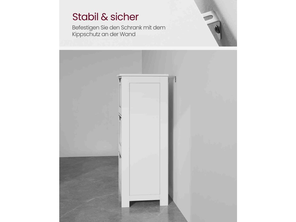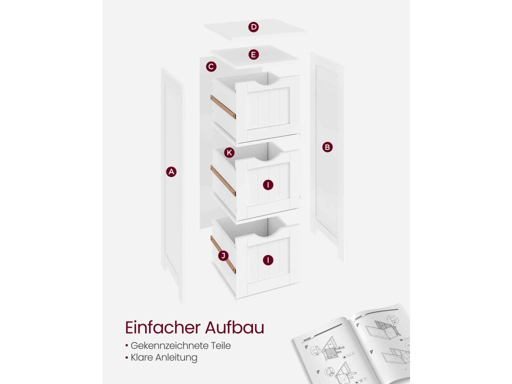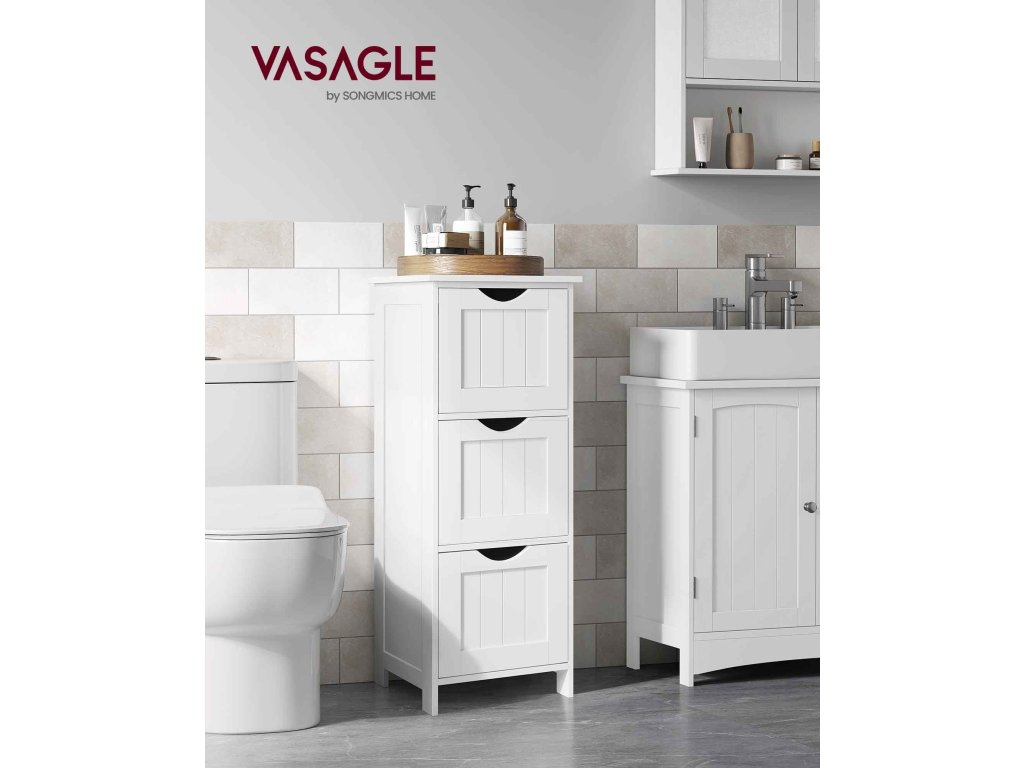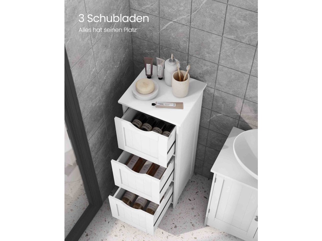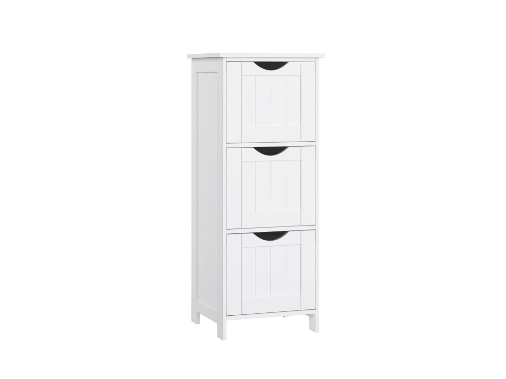 POHODLNÁ BÍLÁ: Přijetí tohoto elegantního matně bílého kusu nábytku znamená, že do svého domova přidáte zdroj světla. Jeho vliv severského stylu vyzařuje lehkost a jemnost pro 100% uklidňující atmosféru.TRVALÁ ŽIVOTNOST: Tato pozoruhodně pevná úložná skříňka je vyrobena ze silné a odolné dřevěné desky třídy E1, má lakovanou povrchovou úpravu a hladký, snadno čistitelný povrch, který se bude lesknout donekonečna.1, 2, 3 zásuvky: Tato skříň vám nenabízí pouze 1 nebo 2, ale 3 velké zásuvky, které znásobí úroveň čistoty vašeho interiéru! Vaše knihy, kosmetika a oblečení se do něj perfektně vejdeSLOUŽÍ NA MNOHA MÍSTECH: Nedostatek místa? Díky kompaktním rozměrům 32 x 30 x 81 cm (d x š x v) tato podlahová skříňka zabírá velmi málo místa a lze ji snadno zasunout mezi nábytek nebo do rohů, které jste považovali za příliš úzké.BEZ NÁMAHY: Snadno pochopitelný, ilustrovaný návod a očíslované díly usnadňují montáž tohoto koupelnového nábytku.| Kategorie: | Koupelnový nábytek |