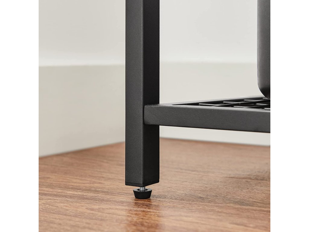 Stabilitu zajišťují silné ocelové trubky o rozměrech 2 x 2 cm a kvalitní dřevotřískové desky, které tvoří pevnou konstrukci této kuchyňské police. a také nastavitelné nožičky na dně, které pomáhají udržet vše na místě i na nerovných podlahách.