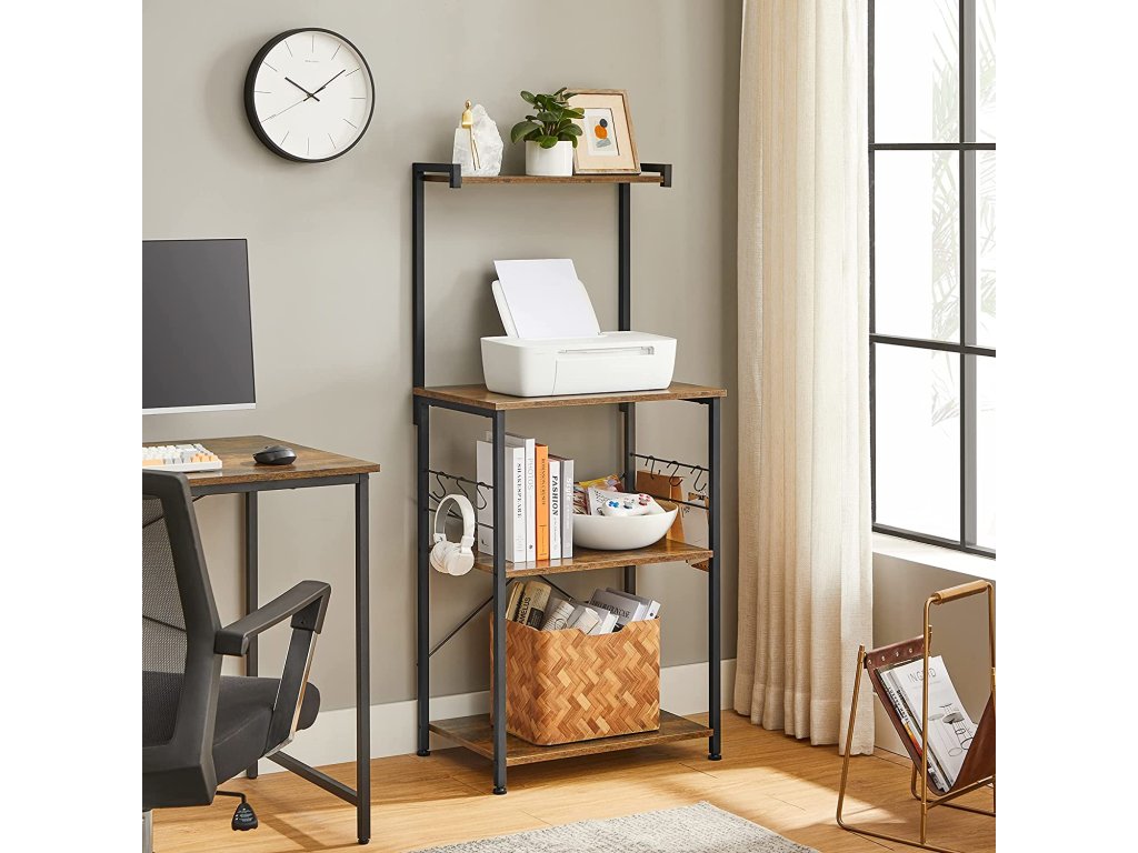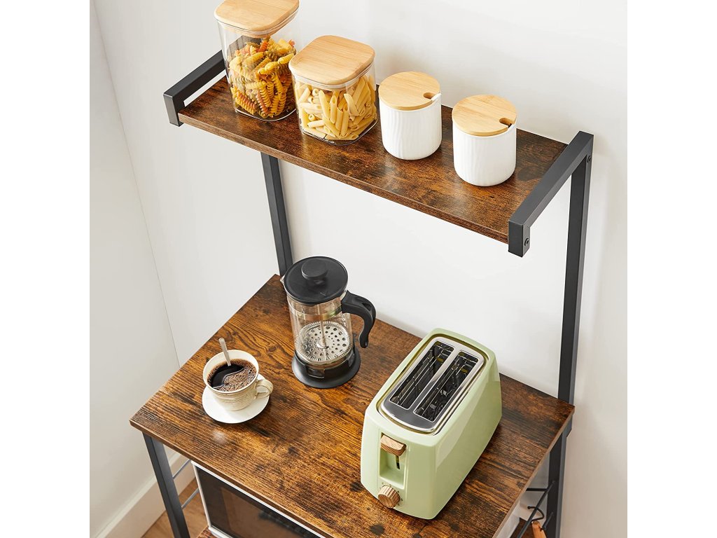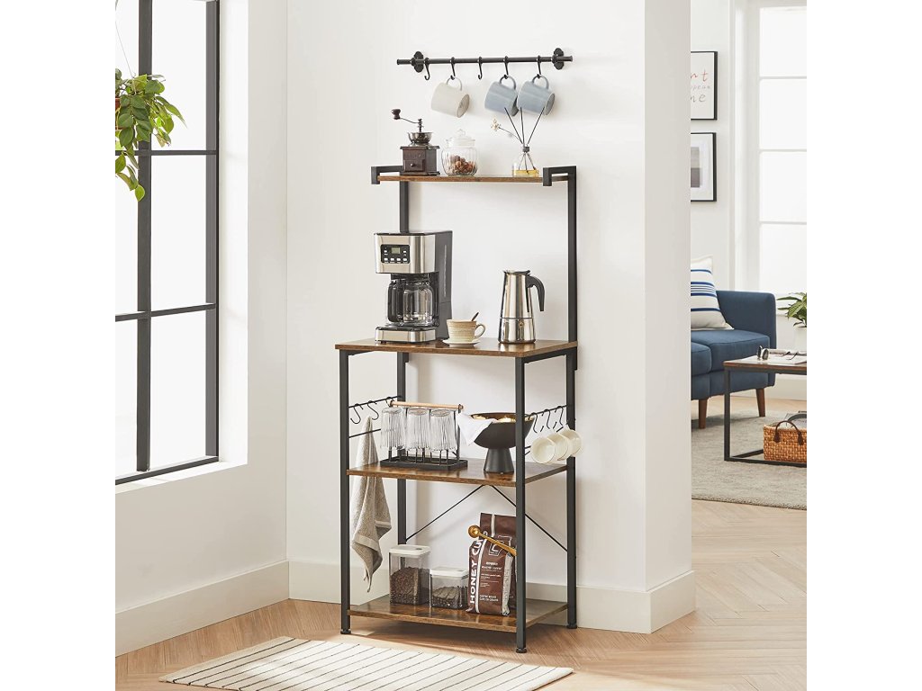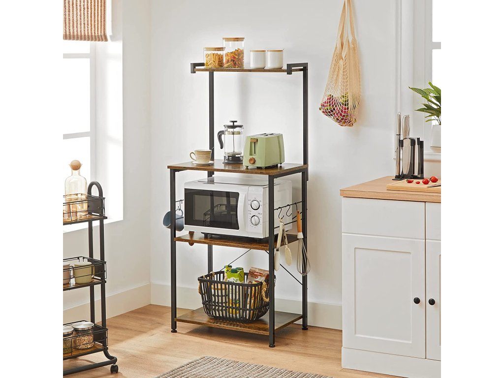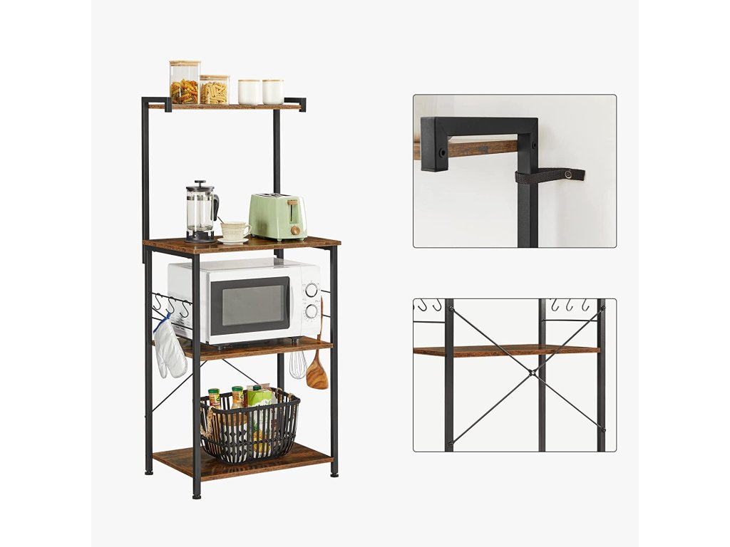 Kuchyňský stojan 3-stupňový stojan se 6 háčky ve tvaru S Průmyslový design Mikrovlnné nádobí na vaření Koření hrnce a pánve Vintage hnědočerná.
